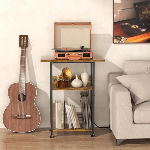 Return Policy Fast Delivery Trusted seller Record Player Stand - 3-Tier Rustic Brown Vinyl Storage Table with Charging Station, Stylish Turntable Organizer for Living Room & Bedroom, Elegant Gift for Music Lovers & Vinyl Enthusiasts Product Description THREE-TIER RECORD RACK - This record player stand with vinyl storage features three tiers, including a spacious tabletop for record players of all sizes. Additionally, the 2nd and 3rd tier open storage shelves can hold up to 100 records, making it a categorized storage solution that combines artistry and practicality. The classic rectangular frame and lightweight design of the Tall Record Display makes it easy to move and carry. SIDE TABLE WITH OUTLETS AND USB PORTS - The charging station includes 2 three-prong AC outlets and 1 USB port + 1 Type-c, which not only provide direct power to your record player but also give you the freedom to charge your cell phone, lamp, and laptop. The 59" power cord provides great convenience for everyday use. PRACTICAL DESIGN - Measuring 11.81" (D) x 15.75" (W) x 31.70" (H), this turntable stand can be used not only as a record player stand, but also as a side or end table in small spaces. Iron mesh and small wooden boards to keep records and items from falling off the second and third open shelves of the record rack. Adjustable feet to help keep the record player cabinet level on uneven floors. FARMHOUSE STYLE END TABLE - The Mid-Century Record Player End Table combines a rustic brown wood grain with matte black metal brackets to retain the vintage feel of the wood grain without losing the modern industrial style. The turntable stand is made of sturdy and durable wood panels and a corrosion and rust resistant metal frame to ensure long term use. THICK PACKAGING AND EASY ASSEMBLY - We pack these industrial record player racks in thickened Styrofoam and tough cardboard boxes to ensure they arrive in perfect condition. These vinyl record player racks come with detailed instructions, labeled parts, and an assembly tool to help you assemble the record organizer rack more easily. Also, you can check out our installation video. Shipping Returns Payment Shipping Shipping is FREE to all addresses other than APO/PO boxes in the lower 48 states. All our stock ships from US-based warehouses. Shipped via USPS or UPS (depending on location and package weight) Unless stated otherwise, all orders will ship within 24-72 hours of your payment being processed. Check our feedback to see the great reviews of FAST shipping we offer. Returns Seller does not accept returns Payment We currently accept payment via eBay managed payments only. Once payment is cleared, we will dispatch your shipment within 1-3 business days. Please refer to the "Shipping" tab for more information regarding shipping speed to your destination.