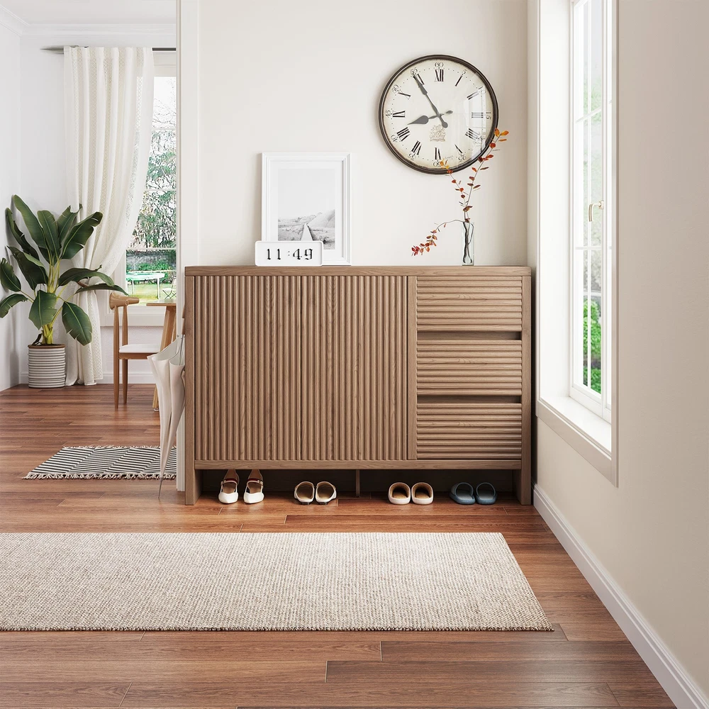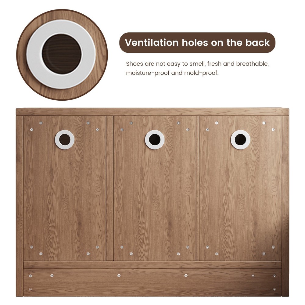 About this Item 【Large Capacity Shoe Cabinet】: This 45.7-inch shoe storage cabinet offers spacious storage with two cabinet doors and three interior shelves, allowing you to store multiple pairs of shoes neatly and efficiently. The two drawers provide extra storage for small essentials like socks, keys, or accessories. It’s an ideal shoe organizer for families who value both storage space and a tidy home. 【Multi-Functional Storage Design】: The cabinet features a bottom open shelf where you can conveniently place frequently worn shoes for easy access. The top surface serves as an additional display area for plants, decorations, or storage baskets. With multiple storage formats in one design, this shoe cabinet helps you make the most of every inch, keeping your entryway stylish and clutter-free. 【High-Quality Materials】: Built with premium engineered wood, this shoe organizer cabinet is sturdy, durable, waterproof, and scratch-resistant. The reinforced frame and high-quality metal hardware ensure long-term stability and smooth door operation. Whether placed in your entryway, hallway, or living room, this cabinet maintains its elegance and functionality for years of daily use. 【Breathable Design】: To keep your shoes and the interior fresh, the Guyii Shoe Storage Cabinet includes three ventilation holes on the back panel. This thoughtful design improves air circulation, prevents moisture buildup, and reduces unpleasant odors—keeping your footwear dry, clean, and ready to wear at all times. 【Easy Assembly & Customer Service Guarantee】: The Guyii Shoe Cabinet comes with clear instructions and all necessary hardware for quick, hassle-free assembly. Its smooth surface makes it easy to clean—just wipe with a damp cloth to maintain its beautiful walnut finish. We are committed to providing 100% customer satisfaction—if you encounter any issues, our team will offer prompt and professional service to ensure you have the best shopping experience.