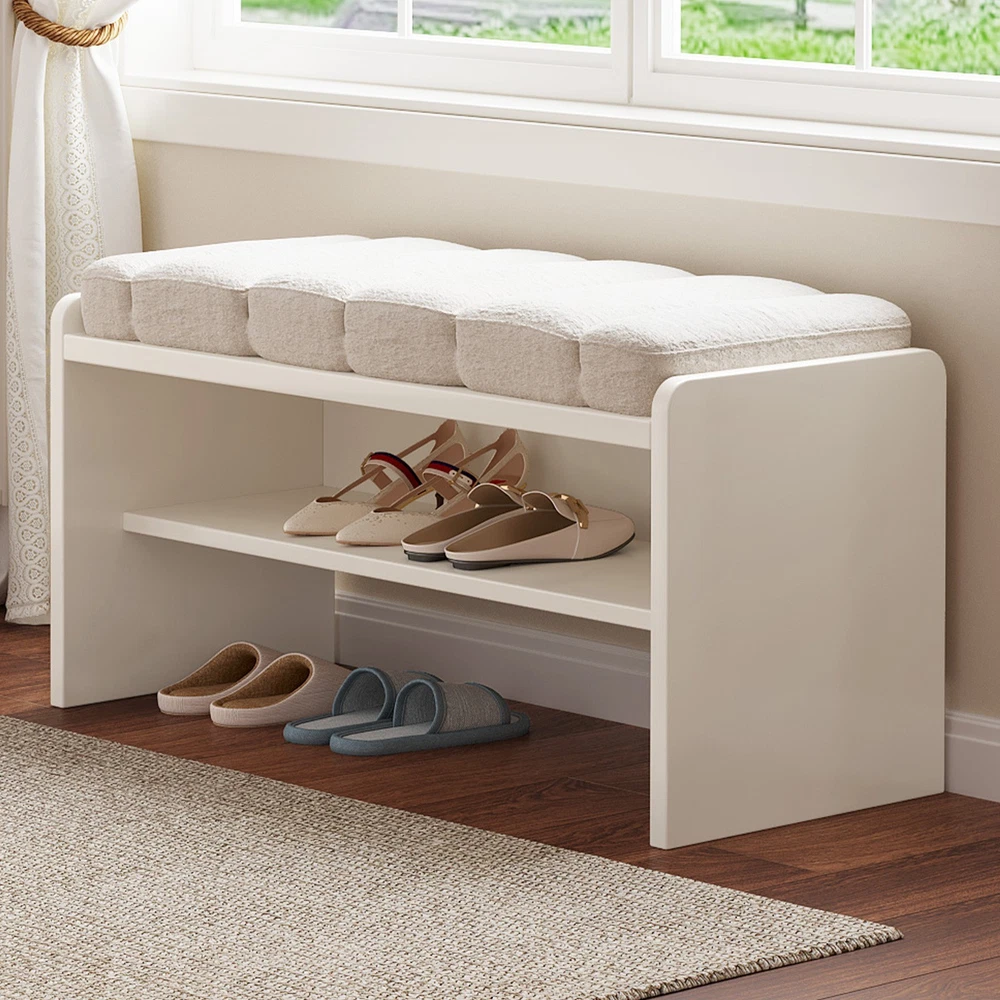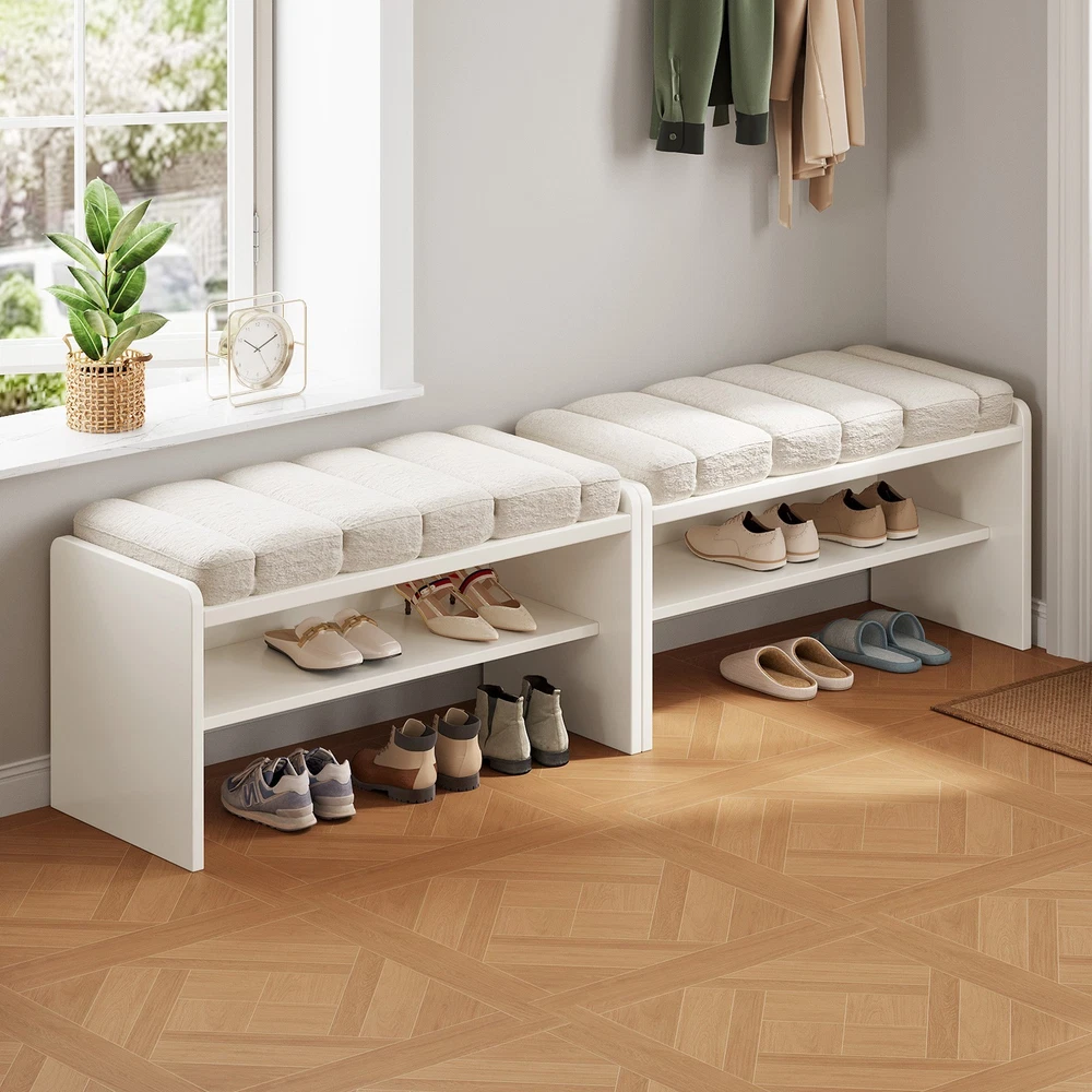 Guyii 3-Tier Shoe Storage Bench with Soft Cushion Ottoman Shoe Rack for for Entryway, Entry, Living Room, Hallway, Beige Soft & Comfortable Cushion: The top seat is covered with a soft, breathable fabric that feels like velvet to the touch. Filled with thick, resilient foam, it provides a plush and cozy seating experience while remaining durable and resistant to wear. The skin-friendly and breathable material ensures comfort even with long-term use Dual-Layer Shoe Storage Rack: Designed with a practical two-tier shoe rack, this bench maximizes your storage without taking up extra space. The open design keeps your shoes organized, visible, and well-ventilated, making it easy to access everyday footwear. Ideal for households with multiple pairs of shoes to manage. High-Quality Engineered Wood Frame: Built with premium engineered wood, the frame ensures long-lasting strength and stability. This bench is sturdy and wobble-free, capable of holding up to daily use without sagging or squeaking. Its smooth surface is resistant to scratches and easy to clean. Versatile Placement in Any Room: This multifunctional bench suits a variety of spaces, including your entryway, bedroom, living room, or even at the foot of your bed. Its neutral beige tone and minimalist design make it a perfect match for modern, farmhouse, or classic décor styles. Easy Assembly & Exceptional Service: Comes with clear instructions and all necessary hardware for a hassle-free setup. Most customers complete assembly in under 15 minutes. Plus, we offer top-notch customer support—if you encounter any problems, we’ll respond promptly and resolve the issue 100% to your satisfaction. Packing Includes: 1 x Shoe Bench 1 x Assemble Instruction 1 x Accessories required for assembly