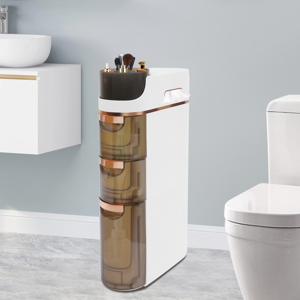 3-Tier Slim Bathroom Storage Cabinet with Drawers for Small Spaces