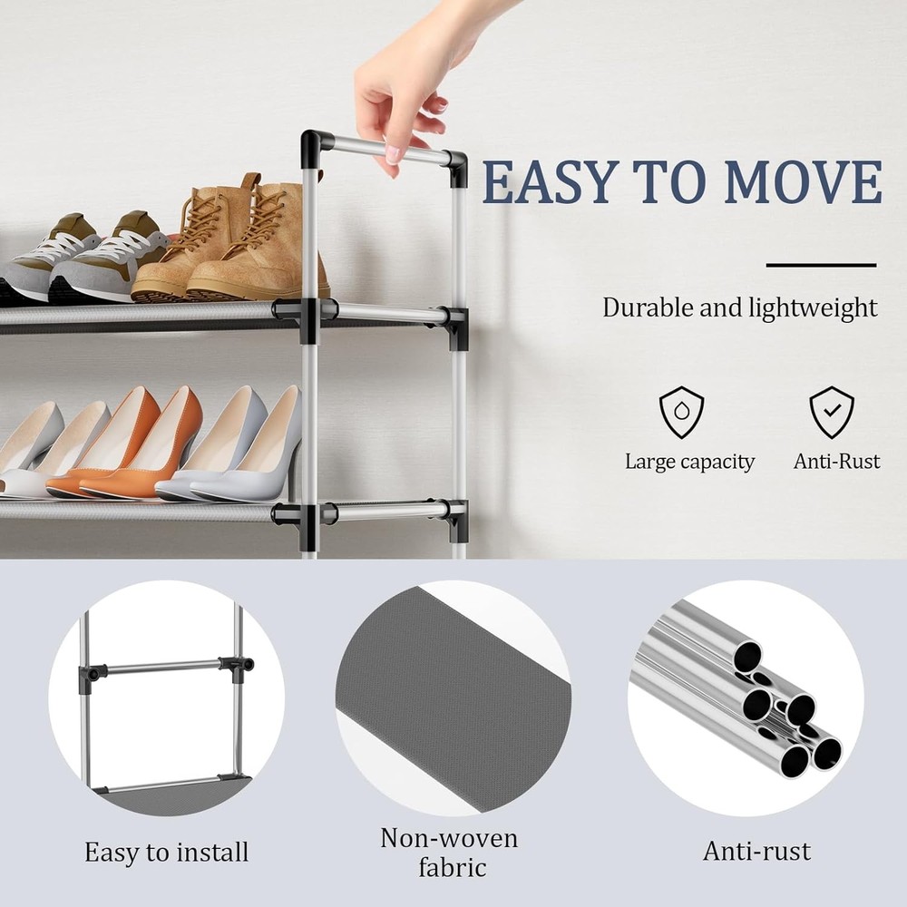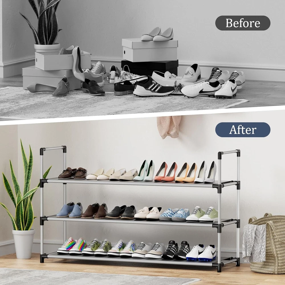Shoe Rack with Non-Woven Fabric,Stackable Grey 3-Tier 3 Tier(26"W) Description: Features: High quality materials: The shoe organizer is made of rust resistant coated stainless steel pipes to ensure durability and stability. The non-woven fabric material can easily lift any shoes. Spacious storage space: This shoe rack provides enough space to accommodate your daily footwear, including sports shoes, high heels, slippers, rain boots, and more. Each layer can store approximately 4 pairs of shoes. Easy to assemble: The shoe storage includes all accessories and provides instructions to ensure quick and easy assembly of the shoe rack, without the need for screws or any other tools during installation. Easy to move: The design of 2 handles allows the shoe shelf to be easily lifted and moved anywhere, maximizing its effectiveness. Multi purpose: This shoe rack organizer is compact in size and can be placed in small spaces at home, such as garages, walk-in wardrobes, and living rooms. It can be used to store shoes, bags, records, and more. Fully utilize the compact storage area. SHIPPING: We are always working hard to ensure your package arrives as soon as possible. Please understand that some factors like weather, high postal traffic, and the performance of shipping companies are outside of our control. We offer free shipping to the lower 48 states and ship within 3 business days of payment, usually sooner. We do not accept P.O. Boxes. Please provide a physical address. For shipping outside of the continental USA, we only use eBay's Global Shipping Program. The item is shipped to KY and then sent to the rest of the world. International customers are responsible for all duties and taxes. Continue to check out in order to calculate costs for shipping the item to your country. Messages regarding eBay's Global Shipping Program MUST be directed at eBay EXCLUSIVELY. PAYMENT: We accept payment by PayPal only (Can accept all kind of credit cards). Please pay as soon as possible after winning an auction, as that will allow us to post your item to you sooner. Payment must be received within 3 business days of auction closing. Before buying, please make sure your PayPal and eBay address is correct. If not, please correct it before payment. We have confidence in our products, but if you are not fully satisfied please contact us within 30 days of purchase and you will get full refund of your money. Return the product in the same condition you received it. Please note - return shipping will be paid by the buyer.