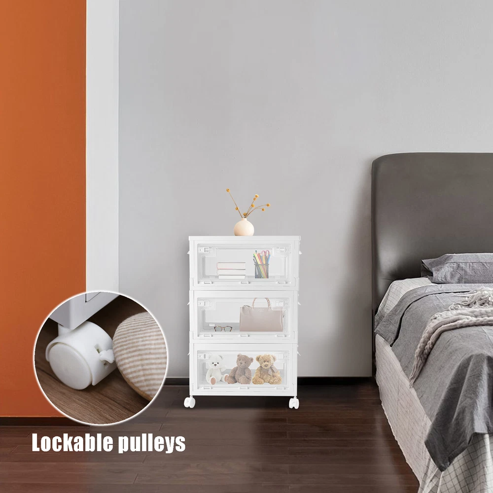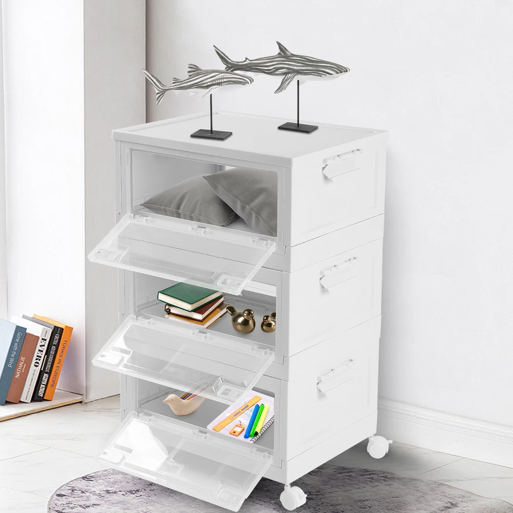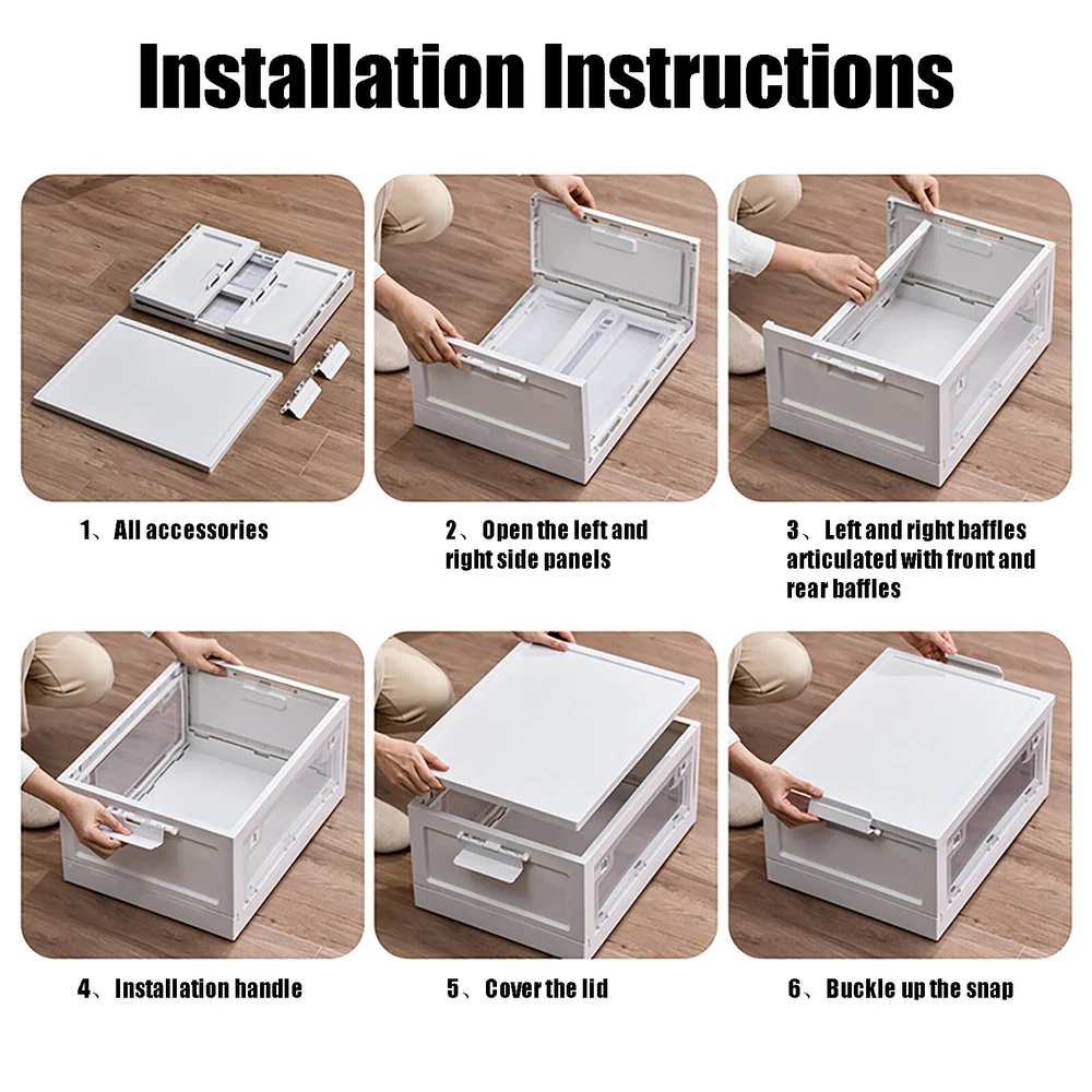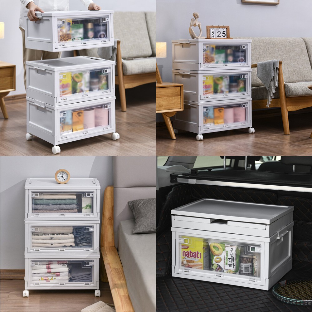 Specification Material: PP Color: White and Clear Assembly Required: Yes Total Height(Wheels not included): 72cm/28.3in Single Storage Bin Size: 50*36*24cm/19.6*14.1*9.4in Folded Height(Single): 6.5cm/ 2.5in Capacity(Each): 45L/10.23 Gallons Maximum Load(Each): 50kg/110.2lbs Package Included 3* Plastic Storage Bins with Lids 4* Wheels 3* English Manuals All Accessories for Assembly WELCOME Harvest A Clean And Warm Home! Plastic Storage Bins with Lids Are you often unable to find what you need to use? Are you often bothered by the fact that the plastic storage bins are not big enough? Choose this 3-tiered large-capacity storage box, to bring your life neat and orderly! Key Feature About Storage Bins Neat and Orderly: These plastic storage bins with lids can store towels, tissues, books, data cables, and other daily essentials to create a cleaner and tidier room environment. Saving Space: you can stack them at will to suit your needs. Moreover, these plastic storage bins can be folded. After folding, each storage bin is only 2.6 inches high. Convenient to Access: When the storage bins are stacked together, the door can be easily opened to reach items without removing the lid. Easy to Carry: This plastic storage bin is designed with carrying handles and is equipped with 4 universal wheels , Also, you can easily clean the place under these storage bins by just pushing a little. Sturdy and Durable: This plastic storage bin is made of thickened material, which can strongly bear 110.2lbs, while the PP material is anti-corrosion and anti-rust, which can be used for a long time. Design with Lid: This plastic storage bin has a design with a lid to protect against dust and moisture and maintain the dryness and freshness of its contents. Easy to Assemble It only takes a few seconds to unfold the bin, and after unfolding, you just need to install the baffle, cover, handle, and pulley. The entire installation process does not require tools. There are three storage boxes , each with a capacity of up to 45L , so you can store a lot of things at once. Specification Material: PP Color: White and Clear Assembly Required: Yes Total Height(Wheels not included): 72cm/28.3in Single Storage Bin Size: 50*36*24cm/19.6*14.1*9.4in Folded Height(Single): 6.5cm/ 2.5in Capacity(Each): 45L/10.23 Gallons Maximum Load(Each): 50kg/110.2lbs Package Included 3* Plastic Storage Bins with Lids 4* Wheels 3* English Manuals All Accessories for Assembly Application This item can be used to store books, towels, snacks, sundries, etc. You can put it in the living room, children's room, study, bedroom, or car. Details Pull Rings: The bin has two pull rings on left and right, you move the ring inward to open the door, which is very convenient. Bottom Grid Design: The bottom of this plastic storage bin is designed with a reinforced grid, which further ensures the stability of the plastic storage bins. Wheels with Brakes: Each wheel has a brake to fix the bin in place. Notes Please allow the slight color difference caused by the shooting light and 1-3cm error due to manual measurement and make sure you do not mind before ordering. Payment Delivery details Terms of sales About us Contact us Payment We accept ebay payment 。 Fees such as import duties, taxes are not included in the item price or shipping costs. These charges are the buyer's responsibility. Delivery details Shipping: 2-9 working days to: USA Terms of sales We maintain high standards of excellence and strive for hundred percent customer satisfaction. Feedback is very important to us. We hope that you contact us immediately before you give neutral or negative feedback, so that we can address your concerns. It is impossible to address issues if we do not know about them! About us Your satis faction is our ultimate goal. We work hard to earn your trust and future business. Our certified technicians have tested each item before shipping. The unit comes with 1 year limited warranty on all manufacturing defects. a) If you receive a defective item, you may return it or ask for a discount. Please contact us within 14 days after you receive the package. b) What you returned must be intact and in its original packaging as re? u. Customer is responsible for shipping costs of the returned item. c) We will cover the cost of shipping back t with the shipping rate indicated in the registration page. We will send you a new unit or refund the full payment you paid. Thank you. Contact us Business Hour Business Hour: Monday To Friday: 8:30 AM to 5:00 PM (Beijing China time) Due to time zones, our reply to your questions may not be immediately. But within above working time, we will reply your email within 24 hours. If it's non-workdays, please kindly be patient and wait till Monday. Please contact us with ebay message. Please feel free to contact us if you have any questions. Monday To Friday: 8:30 AM to 5:00 PM (Beijing China time) Due to time zones, our reply to your questions may not be immediately. But within above working time, we will reply your email within 24 hours. If it's non-workdays, please kindly be patient and wait till Monday. Please contact us with ebay message. Please feel free to contact us if you have any questions. On Aug 14, 2025 at 19:02:04 PDT, seller added the following information: