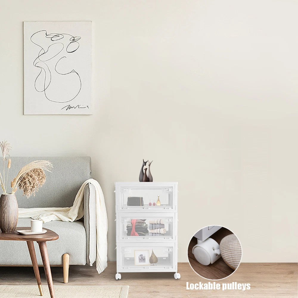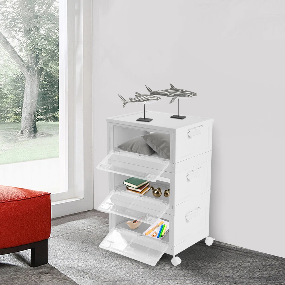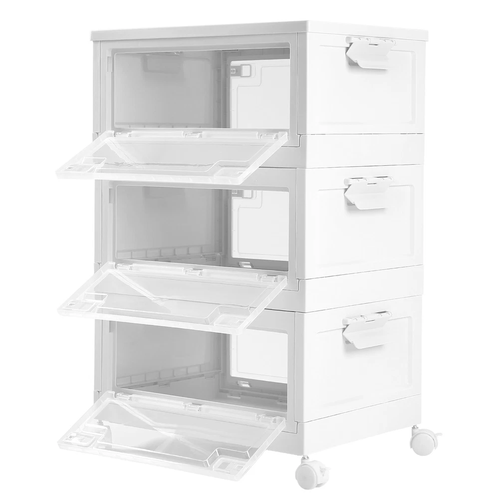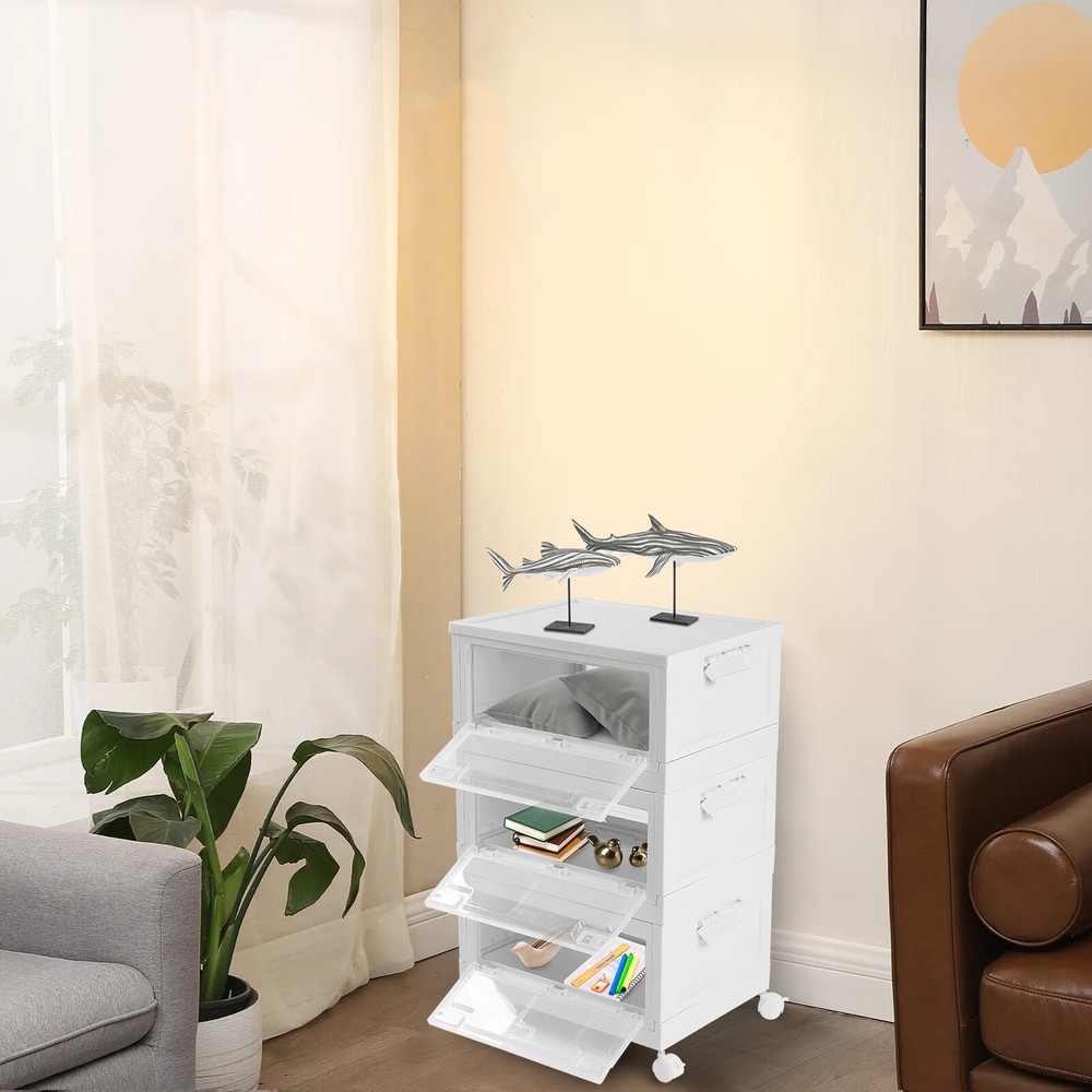 Specification Material: PP Color: White and Clear Assembly Required: Yes Total Height(Wheels not included): 72cm/28.3in Single Storage Bin Size: 50*36*24cm/19.6*14.1*9.4in Folded Height(Single): 6.5cm/ 2.5in Capacity(Each): 45L/10.23 Gallons Maximum Load(Each): 50kg/110.2lbs Package Included 3* Plastic Storage Bins with Lids 4* Wheels 3* English Manuals All Accessories for Assembly WELCOME Harvest A Clean And Warm Home! Plastic Storage Bins with Lids Are you often unable to find what you need to use? Are you often bothered by the fact that the plastic storage bins are not big enough? Choose this 3-tiered large-capacity storage box, to bring your life neat and orderly! Key Feature About Storage Bins Neat and Orderly: These plastic storage bins with lids can store towels, tissues, books, data cables, and other daily essentials to create a cleaner and tidier room environment. Saving Space: you can stack them at will to suit your needs. Moreover, these plastic storage bins can be folded. After folding, each storage bin is only 2.6 inches high. Convenient to Access: When the storage bins are stacked together, the door can be easily opened to reach items without removing the lid. Easy to Carry: This plastic storage bin is designed with carrying handles and is equipped with 4 universal wheels , Also, you can easily clean the place under these storage bins by just pushing a little. Sturdy and Durable: This plastic storage bin is made of thickened material, which can strongly bear 110.2lbs, while the PP material is anti-corrosion and anti-rust, which can be used for a long time. Design with Lid: This plastic storage bin has a design with a lid to protect against dust and moisture and maintain the dryness and freshness of its contents. Easy to Assemble It only takes a few seconds to unfold the bin, and after unfolding, you just need to install the baffle, cover, handle, and pulley. The entire installation process does not require tools. There are three storage boxes , each with a capacity of up to 45L , so you can store a lot of things at once. Specification Material: PP Color: White and Clear Assembly Required: Yes Total Height(Wheels not included): 72cm/28.3in Single Storage Bin Size: 50*36*24cm/19.6*14.1*9.4in Folded Height(Single): 6.5cm/ 2.5in Capacity(Each): 45L/10.23 Gallons Maximum Load(Each): 50kg/110.2lbs Package Included 3* Plastic Storage Bins with Lids 4* Wheels 3* English Manuals All Accessories for Assembly Application This item can be used to store books, towels, snacks, sundries, etc. You can put it in the living room, children's room, study, bedroom, or car. Details Pull Rings: The bin has two pull rings on left and right, you move the ring inward to open the door, which is very convenient. Bottom Grid Design: The bottom of this plastic storage bin is designed with a reinforced grid, which further ensures the stability of the plastic storage bins. Wheels with Brakes: Each wheel has a brake to fix the bin in place. Notes Please allow the slight color difference caused by the shooting light and 1-3cm error due to manual measurement and make sure you do not mind before ordering. Payment Delivery details Terms of sales About us Contact us Payment We accept ebay payment 。 Fees such as import duties, taxes are not included in the item price or shipping costs. These charges are the buyer's responsibility. Delivery details Shipping: 2-9 working days to: USA Terms of sales We maintain high standards of excellence and strive for hundred percent customer satisfaction. Feedback is very important to us. We hope that you contact us immediately before you give neutral or negative feedback, so that we can address your concerns. It is impossible to address issues if we do not know about them! About us Your satis faction is our ultimate goal. We work hard to earn your trust and future business. Our certified technicians have tested each item before shipping. The unit comes with 1 year limited warranty on all manufacturing defects. a) If you receive a defective item, you may return it or ask for a discount. Please contact us within 14 days after you receive the package. b) What you returned must be intact and in its original packaging as re? u. Customer is responsible for shipping costs of the returned item. c) We will cover the cost of shipping back t with the shipping rate indicated in the registration page. We will send you a new unit or refund the full payment you paid. Thank you. Contact us Business Hour Business Hour: Monday To Friday: 8:30 AM to 5:00 PM (Beijing China time) Due to time zones, our reply to your questions may not be immediately. But within above working time, we will reply your email within 24 hours. If it's non-workdays, please kindly be patient and wait till Monday. Please contact us with ebay message. Please feel free to contact us if you have any questions. Monday To Friday: 8:30 AM to 5:00 PM (Beijing China time) Due to time zones, our reply to your questions may not be immediately. But within above working time, we will reply your email within 24 hours. If it's non-workdays, please kindly be patient and wait till Monday. Please contact us with ebay message. Please feel free to contact us if you have any questions. On Aug 14, 2025 at 19:02:04 PDT, seller added the following information: