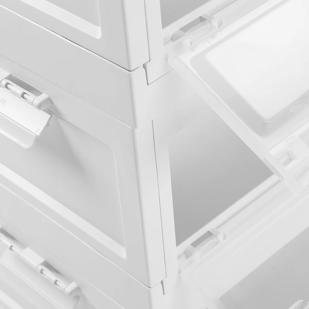 Shape: Rectangle Material: PP Size: Large Total Height(Wheels not included): 72cm/28.3in Item Weight: N/A Type: Decorative Storage Box Brand: Unbranded Color: white,clear Item Width: 36cm/14.1in Capacity: 45L each Item Depth: N/A Number in Pack: N/A Item Length: 50cm/19.6in gtin13: Does not apply Capacity(Each): 45L/10.23 Gallons Item Height: 24cm/9.4in MPN: N/A UPC: Does not apply StartPrice: 64.25496 Theme: N/A Number of Compartments: 3 Number of Items in Set: 10 Maximum Load(Each): 50kg/110.2lbs Model: N/A Mounting: Free Standing Features: Foldable, Stackable Assembly Required: Yes