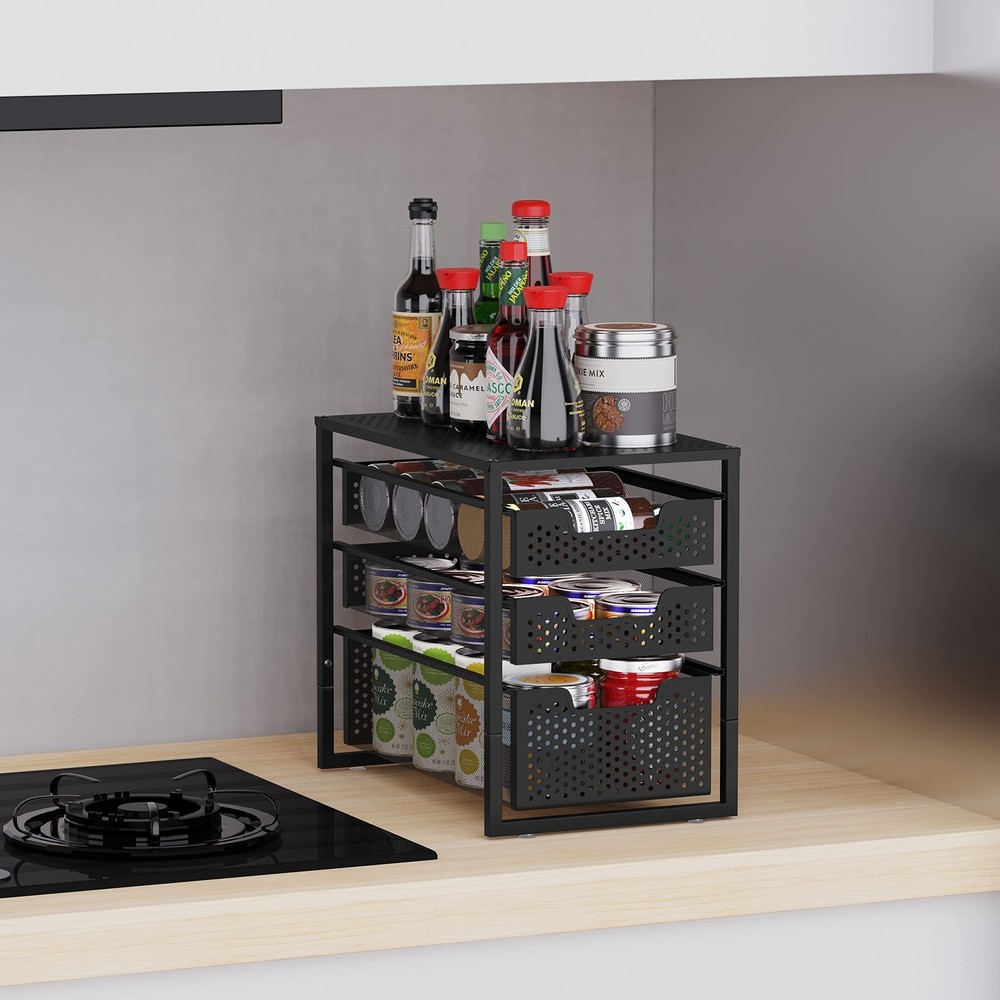 3-Tier Under Sink Cabinet Organizer with Sliding Storage Drawer, Desktop Orga...