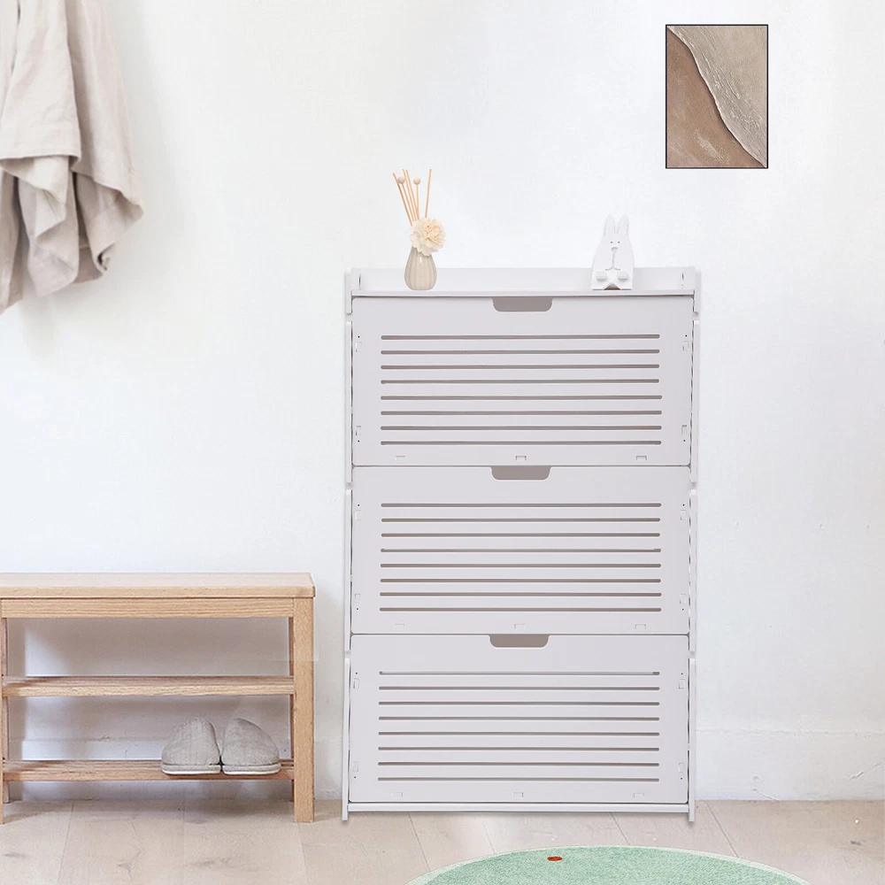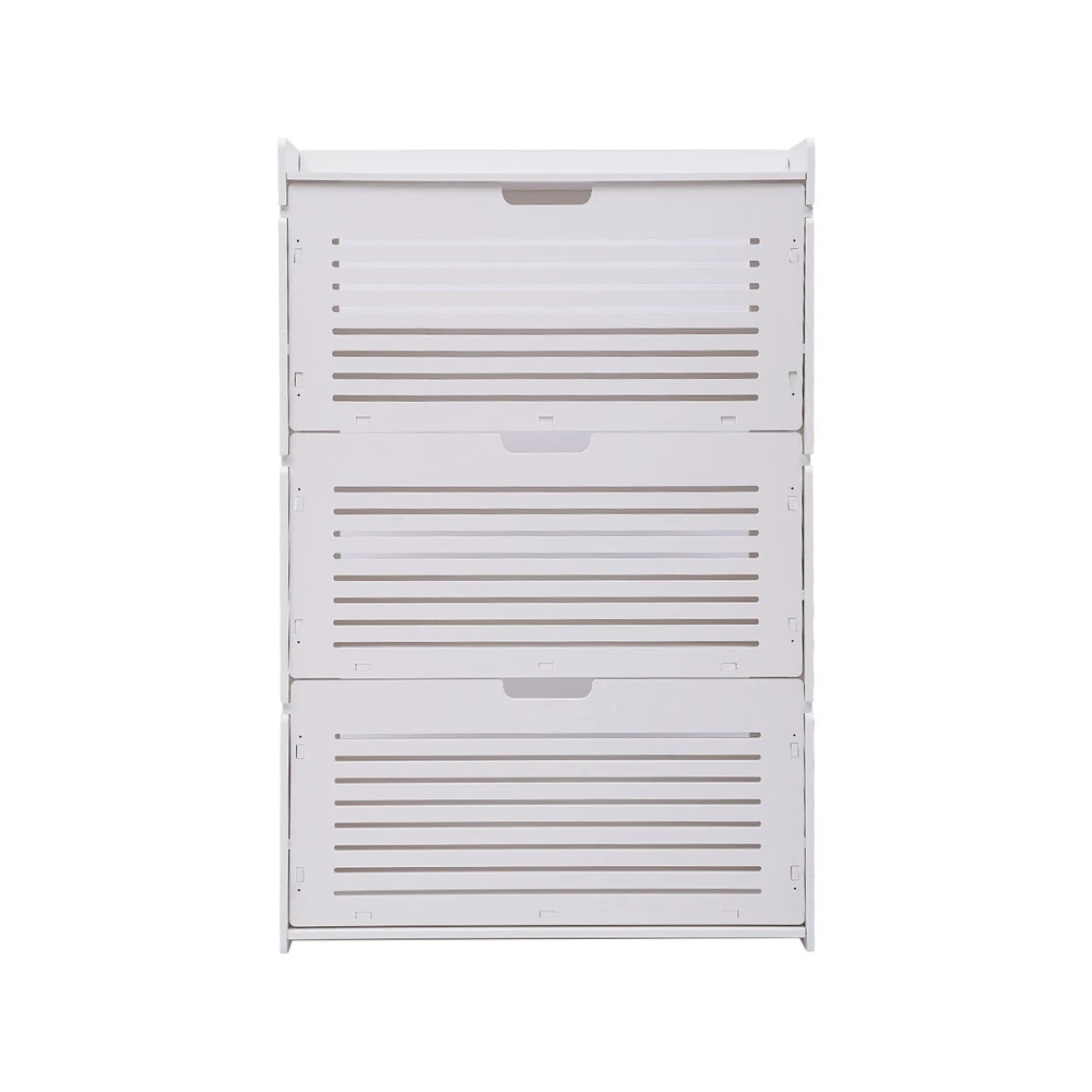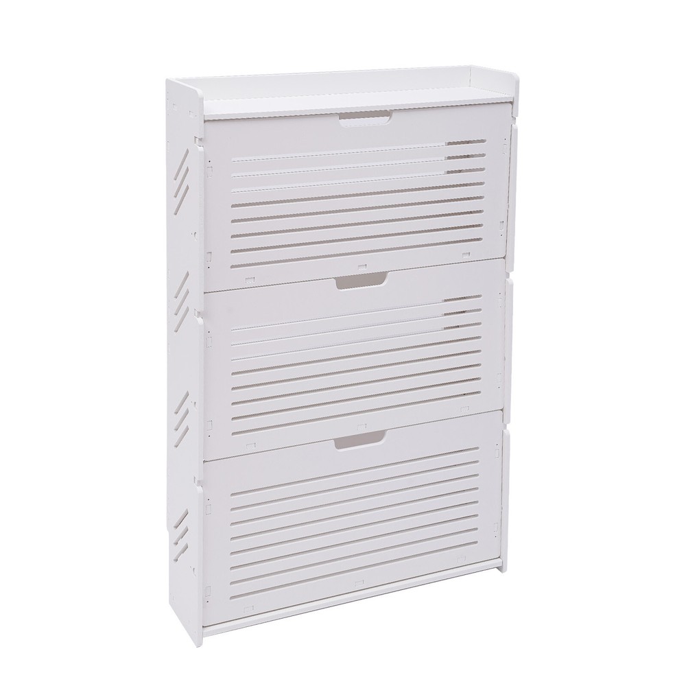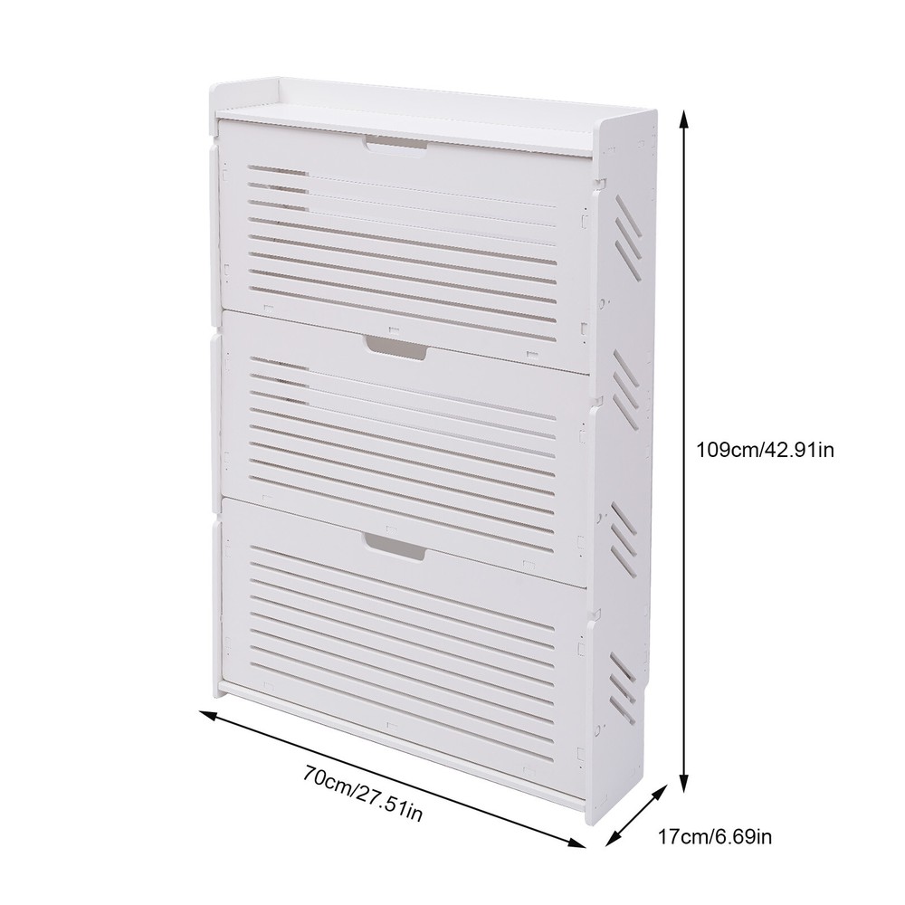 3-Layer Shoe Organizer White Tipping Shoe Cabinet Shoe Rack Cabinet for Entryway Description Are you still worried about having too many shoes lying on the mat at your entrance? This flip-up white shoe cabinet is just what you need! It is made up of three shoe cupboard tiers and a shelf layer, which is enough for your storage needs. You can keep your keys and bags handy, so you can get out more easily and quickly. This shoe cabinet is a good choice for the hallway, living room, and bedroom. Key Features High-quality Material: The shoe cabinet is made of 0.39inch thick PVC plates, which are tough and not easily deformed. It has a good weight-bearing capacity and longe r service life . Great Home Decor : In classic white with a simple design, this shoe storage cabinet provides a sense of modernization, which also enriches your entire entryway and gives your house a new look, showing off your lifestyle. Large Capacity : The shoe storage cabinet has 3 tiers and can store up to 9 pairs of shoes (the number depends on the height of the shoes) to meet your storage needs. Humanized Design: Its surface is smooth without burrs, and it will not scratch the hand. The corners of the frame are designed with rounded corners, so you will not be injured during use. Relieving Your Fatigue: This beautiful shoe cabinet guards the door every day and welcomes you home. It allows you to put away your exhaustion as soon as you get home and start enjoying leisurely home life by taking off your shoes. Organized Lifestyle: This shoe cabinet cleverly integrates shoe storage into life, placing it at the doorway to store your messy shoes, making it pleasing to the eyes as soon as you open the door, bringing you an organized lifestyle. Strong Load-bearing: Each layer of this shoe storage cabinet can be ar about 11.02lbs, e ven if you put heavier leather shoes or boots on it, you can use it with peace of mind. Tipping Bucket Design: The entire shoe cabinet features a tipping bucket design for easy opening and closing, making it very easy to use. It also keeps dust out of the shoe cupboard. Space Saving: With a small footprint of 27.56*6.69 inch at the bottom, it can be placed in every corner of the home. By using the doorway space wisely, even a small entryway can be turned into a storage treasure trove. Easy to Clean: Its PVC material makes it very easy to clean, all you need to do is wipe it down regularly with a dry cloth or wash away any serious stains with soapy water. Easy to Assemble: With all the accessories and instructions included in the package, it is easy and quick to assemble the cabinet without much effort. Easy to Clean: Its PVC material makes it very easy to clean, all you need to do is wipe it down regularly with a dry cloth or wash away any serious stains with soapy water. Easy to Assemble: With all the accessories and instructions included in the package, it is easy and quick to assemble the shoe cabinet without much effort. Details Top Platform: The top platform is spacious enough to hold keys, photo frames, etc., making it very practical. And with an anti-drop fence on the platform, items will not fall easily. Full Plate Layer: The layer rack is designed with a full plate, which can effectively prevent the ash on the bottom of the shoes from falling onto the shoes on the lower layer. At the same time, the full plate layer shelf to place shoes more stable, and even high heels will not fall. Pre-drilled Holes: There are two pre-drilled holes at the top of the back of the shoe cabinet to allow you to fix the cabinet to the wall and prevent it from collapsing. Louvered Doors: Each tier of the shoe cabinet is designed with louver doors for breathability, which accelerates the air circulation in the cabinet and inhibits the growth of bacteria. Concealed Handle: The concealed pull handle is semi-circular. The curved shape is not only subtle and beautiful but also makes it easy to open and close the shoe cabinet without hurting your hands. Reserved Skirting: The skirting at the bottom of the back of the shoe cabinet keeps the cabinet close to the wall and is not easily shaken. Gloves: You can wear the gloves included in the package for installation to prevent abrasion of your hands. Application It is suitable to be placed at the door, living room, or bedroom used to place slippers, casual shoes, high heels, boots, leather shoes, and other shoes, as well as some daily necessities such as keys, books, and umbrellas. It can be used as a shoe cabinet, bookshelf, and storage rack. Specification Color: White Installation Type: Freestanding Style: Modern Shape: Rectangular Material: PVC Number of Tiers: 3 Load Capacity Per Tier: 5kg/11.02lbs Gross Weight: 8.3kg/18.3lbs Net Weight: 8kg/17.64lbs Plate Thickness: 10mm/0.39inch Product Size: 70*17*109cm/27.56*6.69*42.91inch Package Size: 116*37*9cm/45.67*14.57*3.54inch Package Included 1 * Shoe Cabinet 1 Pair * Gloves 1 * Mobile Phone Holder 2 * Fixing Backing 1 * English Manual Other Accessories for Installation Notes Please allow the slight color difference caused by the shooting light and 1-3cm error due to manual measurement, and make sure you do not mind before ordering. Payment Delivery details Terms of sales About us Contact us Payment We accept ebay payment 。 Fees such as import duties, taxes are not included in the item price or shipping costs. These charges are the buyer's responsibility. Delivery details Shipping: 2-9 working days to: USA Terms of sales We maintain high standards of excellence and strive for hundred percent customer satisfaction. Feedback is very important to us. We hope that you contact us immediately before you give neutral or negative feedback, so that we can address your concerns. It is impossible to address issues if we do not know about them! About us Your satis faction is our ultimate goal. We work hard to earn your trust and future business. Our certified technicians have tested each item before shipping. The unit comes with 1 y