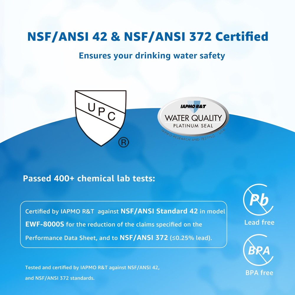 【Replacement Models】3M Filtrete 3US-PF01, 3US-MAX-F01, 3US-PF01H, 3US-MAX-F01H, fits Filtrete Maximum Filtration, 3US-PS01, 3US-MAX-S01 Systems; fits 3M HF25, HF25-S, HF25-MS, HF27, HF27-S, HF20, HF20-A020-S-SR, HF20-A020-SR, HF20-I, HF20-S-SR, HF20-SI. This filter works with a wide range of models. However, have it in mind that the replacement model numbers of the products are almost the same. 【Advanced Filtration Process】It is certified by authority NSF/ANSI 42. Far different from generic brand. 【Safe Material】Specially selected premium materials are lead-free, which is fully certified by the IAPMO against NSF/ANSI 372 standard. 【Rapid, Consistent Flow Rate】The consistent flow rate of this filter makes filtration faster and more efficient. This filter is designed to connect with cold water valve only and does not reduce TDS levels. 【Extended Lifespan】Your filter is only due for change after 6 months or 15,000 gallons – whichever comes first, based on the quality of water being treated.