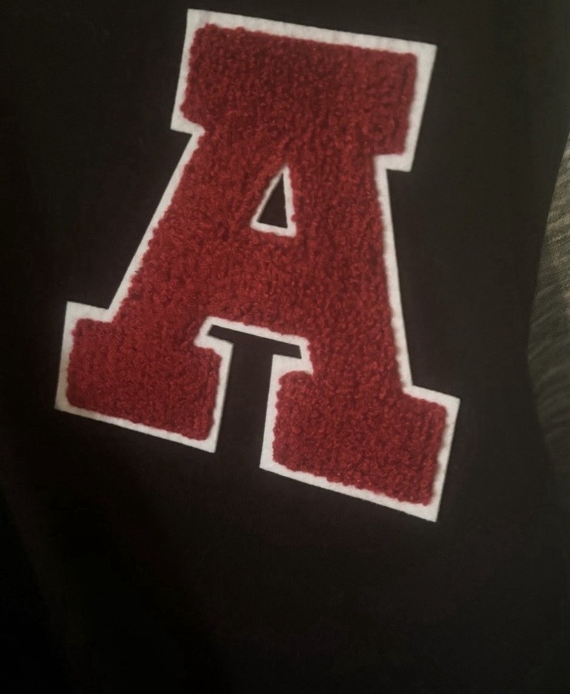 This black and gray varsity jacket is a stylish and versatile outerwear option for women. Made from 100% cotton with polyester insulation, it is perfect for active wear in the winter, fall, or spring seasons. The long sleeves, regular fit, and machine washable design make it both comfortable and convenient. With a classic varsity jacket style, this one-size piece is a timeless wardrobe essential for any casual occasion.