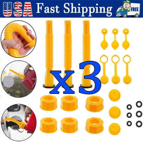 3X Gas Can Replace Spout Nozzle Vent Kit Fit For Plastic Gas Cans Old Style Cap