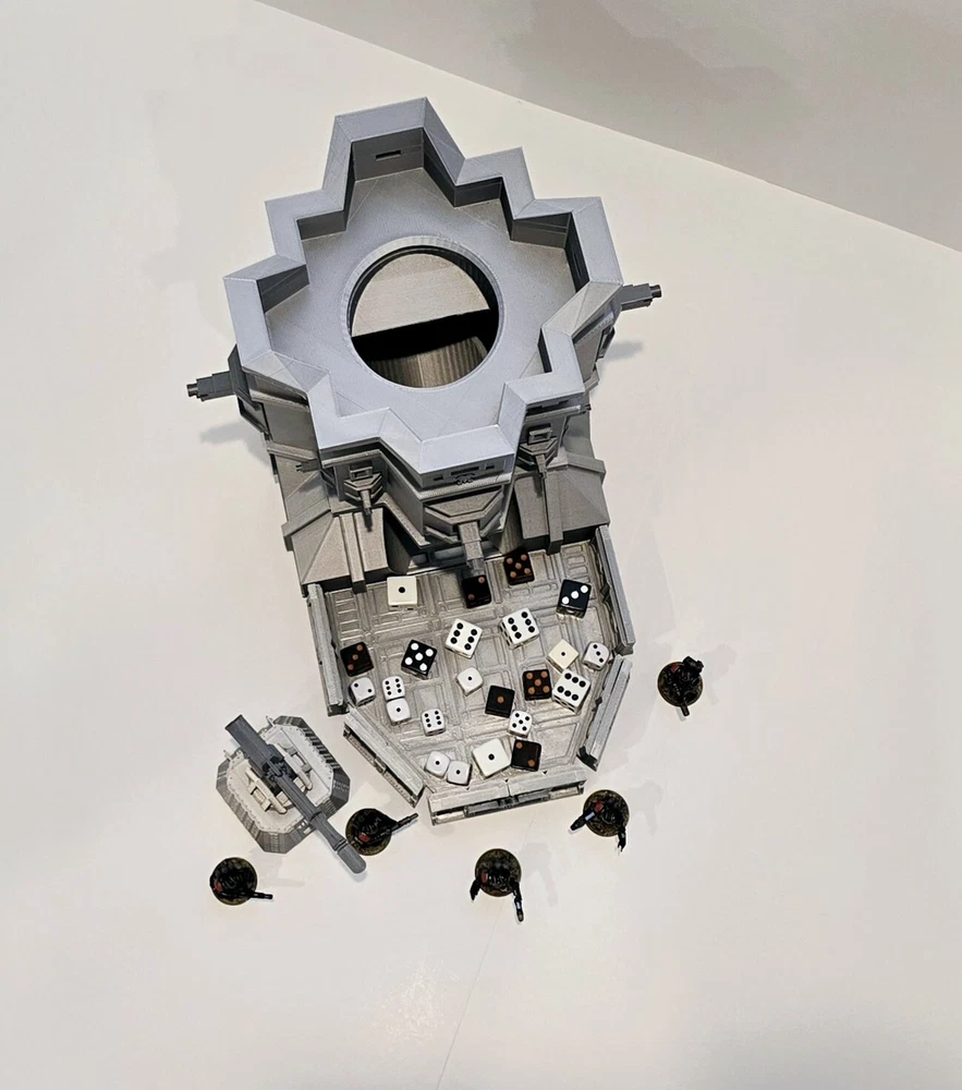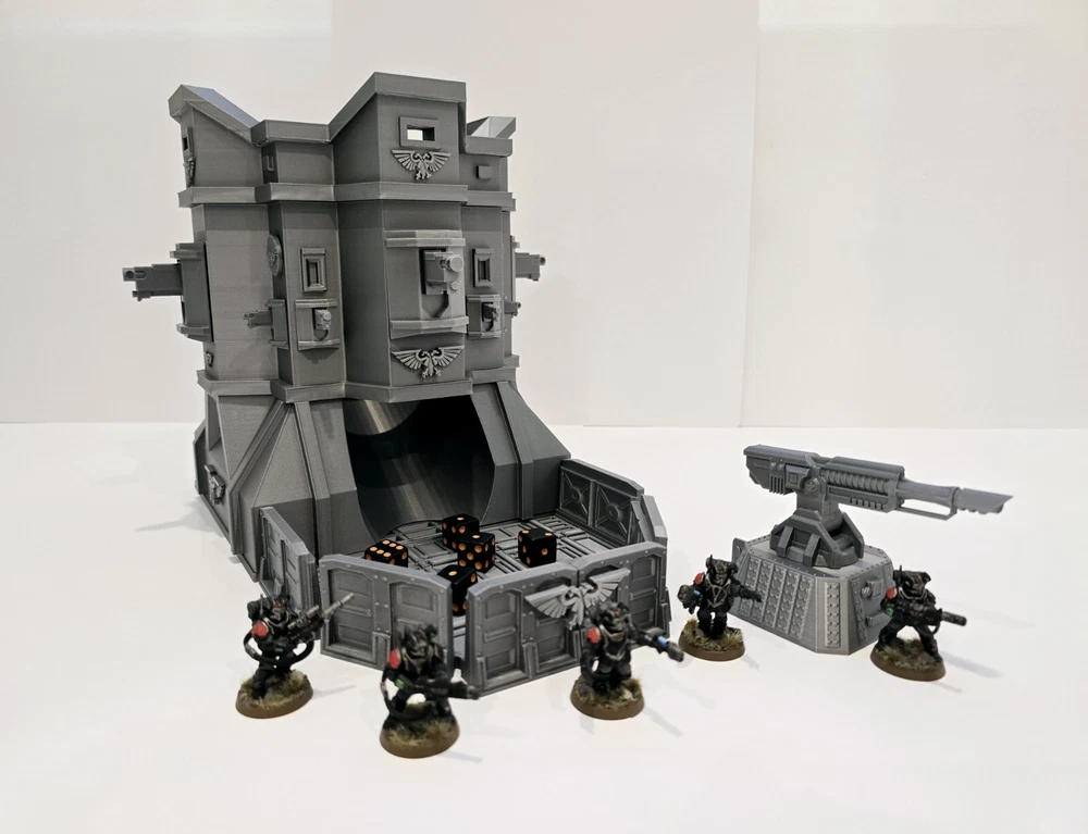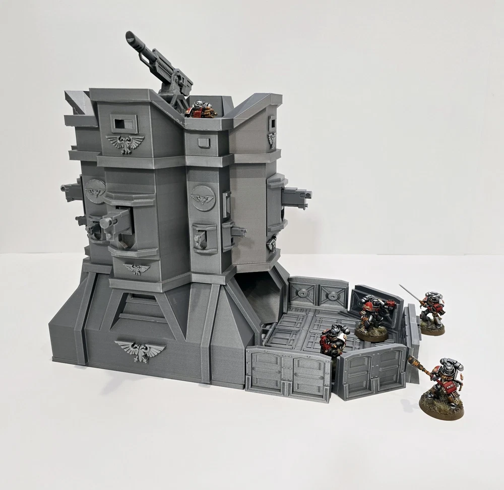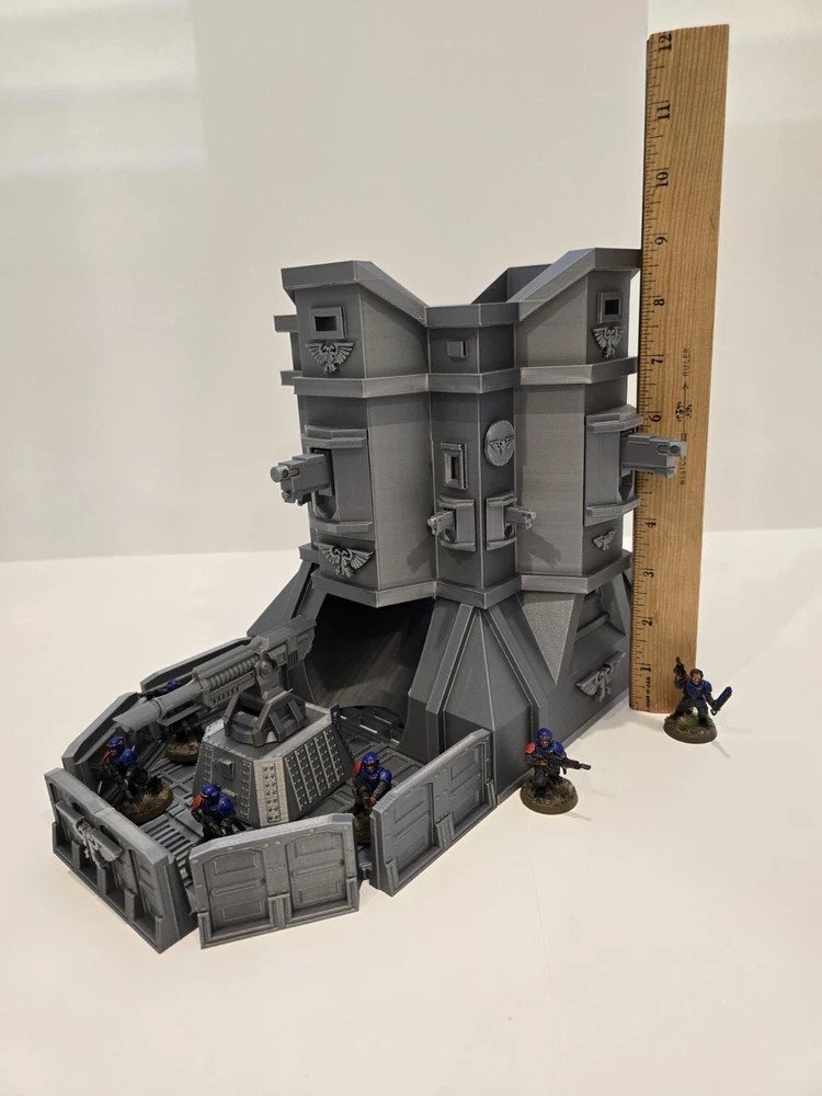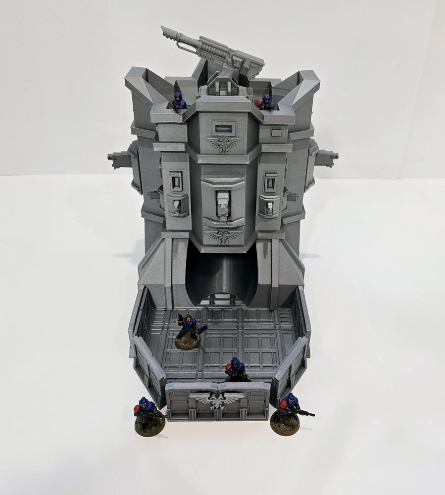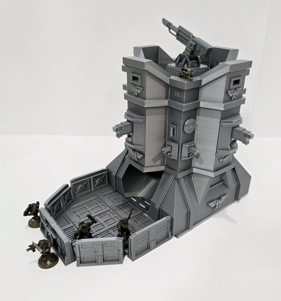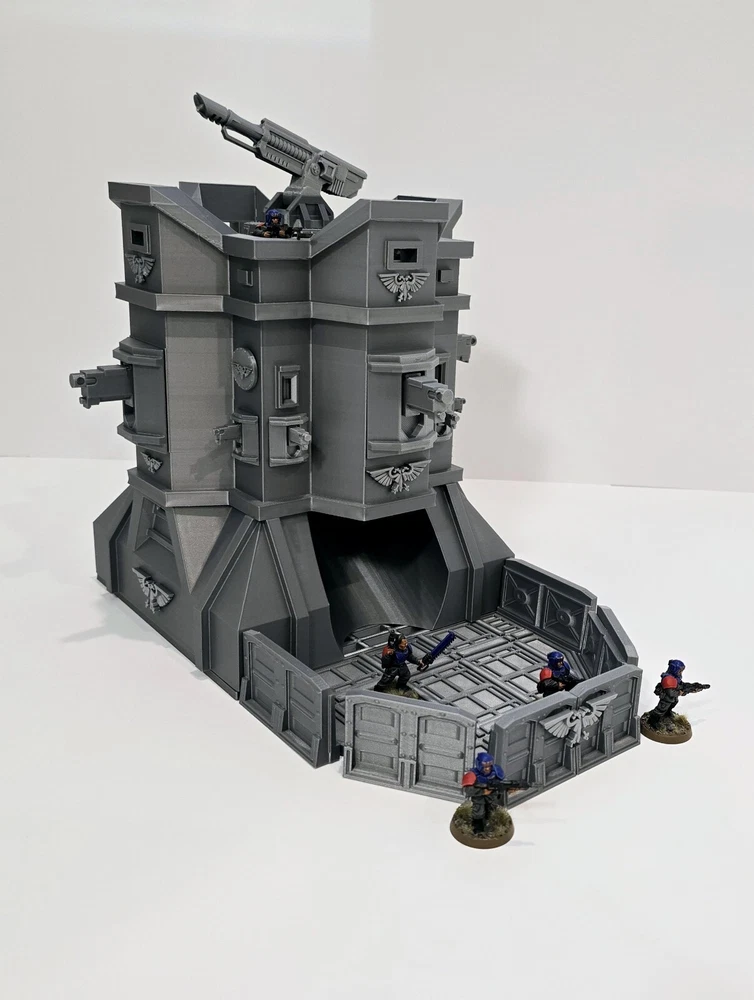 3d Printed Imperial Fortress / Bastion Proxy Dice Tower. 28mm Wargamming Dice Tower. Condition is New. May be printed in either gray or silver aluminum PLA plastic Includes: Imperial Dice Tower This item is a mutilpurpose terrain piece. Not only is it a great looking terrain piece for your tabletop games, it also can serve as a dice tower to roll your dice into without having to worry about them rolling all over the table, knocking over your miniatures, or getting lost under other terrain. It's also very large, measuring almost 9" tall, 7" wide, and 12" long (when tray is connected) and 7" long (when tray is not connected) so it can serve as a centerpiece or objective on the table for your armies to battle over. 3D printed in high-quality PLA plastic. Ready to paint. Disclaimer: Miniatures, Dice, and Ruler in photos are for scale only and are not included. May be printed in either gray or silver aluminum PLA plastic. The piece can be painted with a variety of materials to create great looking terrain fixtures or can be played as is. Wargaming Terrain Scenery D & D D and D Dungeons and Dragons Alien Terrain 28mm Star Wars Legion This item is 3D printed using PLA plastic. The 3D printing process consists of a machine producing layers of melted plastic to create the item. Due to the layering process, lines and minor defects may be noticed. We upload as many pictures as possible to show the lines and imperfections so the buyer is aware of the item's appearance.