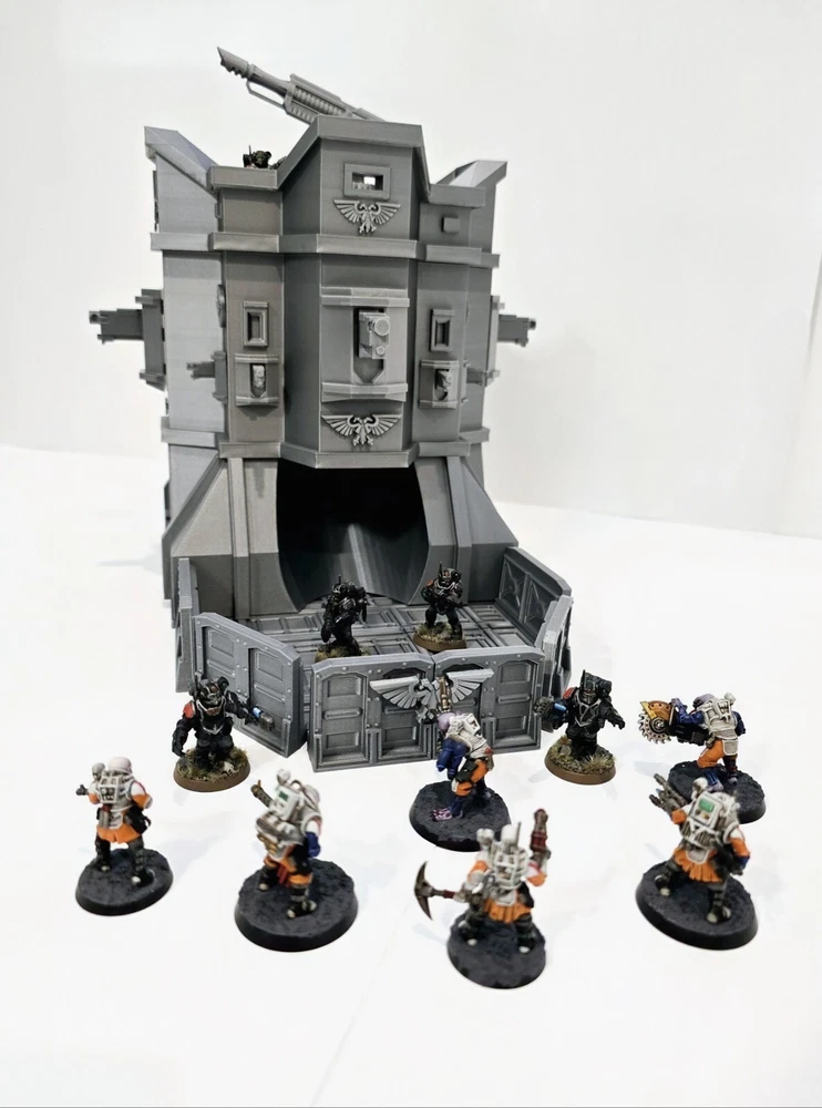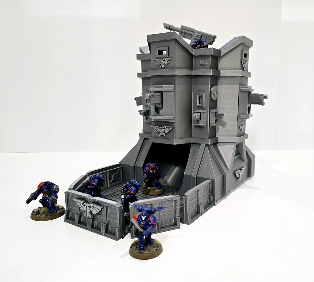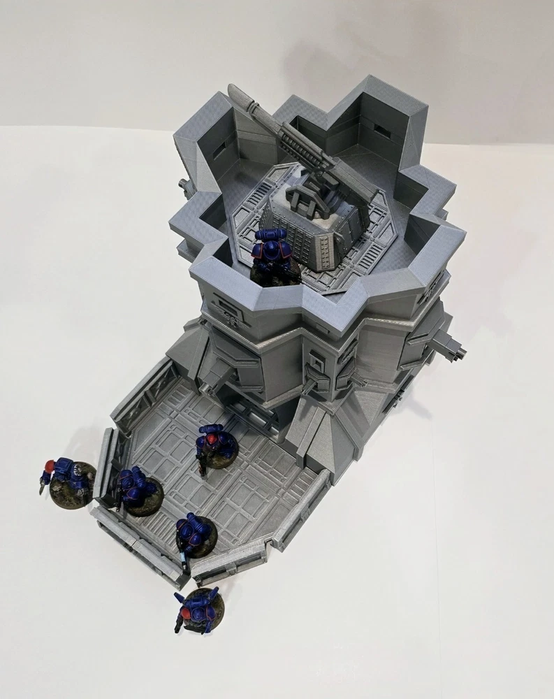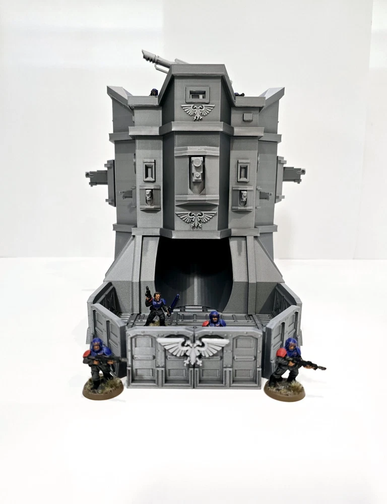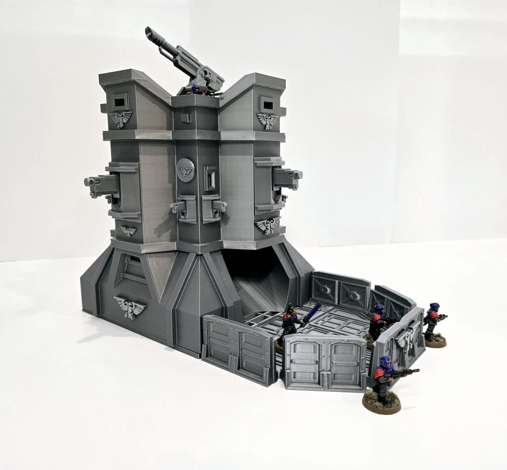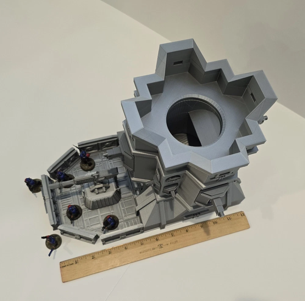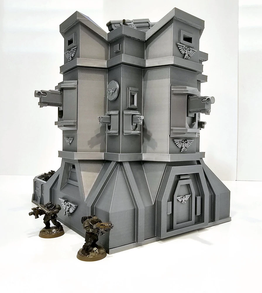 3d Printed Imperial Fortress / Bastion Proxy Dice Tower. 28mm Wargamming Dice Tower. Condition is New. May be printed in either gray or silver aluminum PLA plastic Includes: Imperial Dice Tower This item is a mutilpurpose terrain piece. Not only is it a great looking terrain piece for your tabletop games, it also can serve as a dice tower to roll your dice into without having to worry about them rolling all over the table, knocking over your miniatures, or getting lost under other terrain. It's also very large, measuring almost 9" tall, 7" wide, and 12" long (when tray is connected) and 7" long (when tray is not connected) so it can serve as a centerpiece or objective on the table for your armies to battle over. 3D printed in high-quality PLA plastic. Ready to paint. Disclaimer: Miniatures, Dice, and Ruler in photos are for scale only and are not included. May be printed in either gray or silver aluminum PLA plastic. The piece can be painted with a variety of materials to create great looking terrain fixtures or can be played as is. Wargaming Terrain Scenery D & D D and D Dungeons and Dragons Alien Terrain 28mm Star Wars Legion This item is 3D printed using PLA plastic. The 3D printing process consists of a machine producing layers of melted plastic to create the item. Due to the layering process, lines and minor defects may be noticed. We upload as many pictures as possible to show the lines and imperfections so the buyer is aware of the item's appearance.