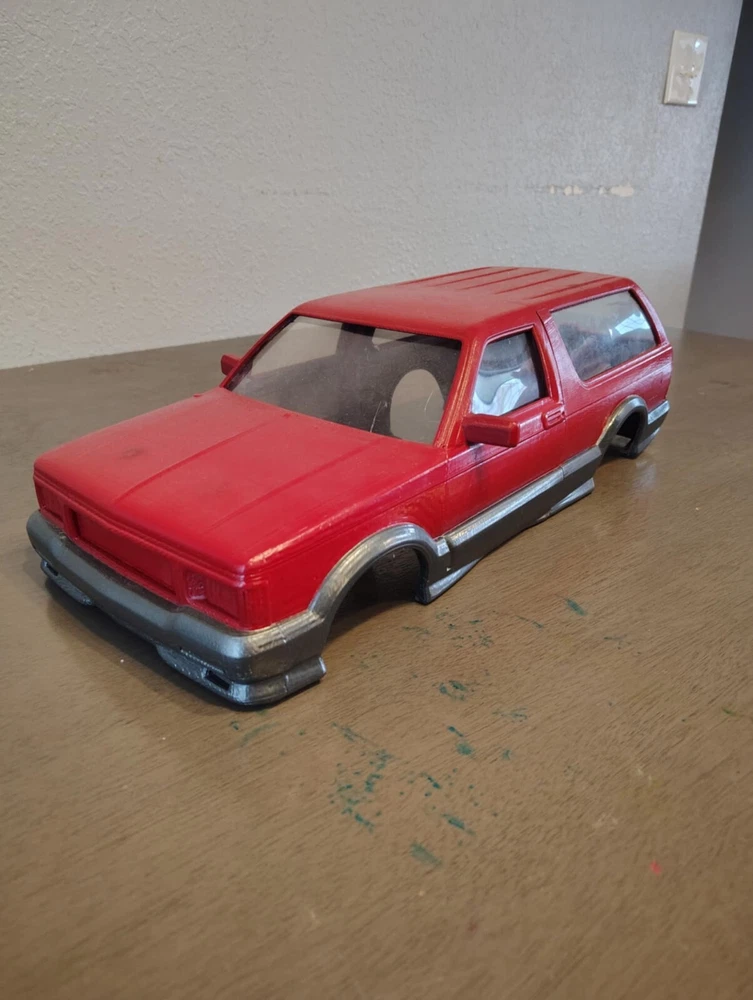 This 3D print is of a GMC Typhoon. It comes SHIPPED IN 2 PIECES AND UNPAINTED JUST AS A SHELL (NO GLASS). All orders will be printed in Gray, if you would like white or black please message me. The photos you see are on a Fazer mk2 FZ02L 1/10 scale frame and required very little trim work to fit. YOU WILL NEED TO PROVIDE MOUNTING HARDWARE. We set this one up on magnetic mounts mainly for the clean look it gives by not having the pins stick through the body. The wheel base is 274 mm, and the front wheel to wheel width is 203 mm. KEEP IN MIND THIS IS 3D PRINTED AND MAY HAVE SMALL BLEMISHES BUT I HANDLE EVERY PRINT TO ENSURE THE BEST QUALITY TO MY ABILITY AND IF I BELIEVE ITS NOT TO MY STANDARDS I WILL FIX IT OR RE-PRINT IT. Any other questions, please ask and thanks. Design by Gauderio designs 3d