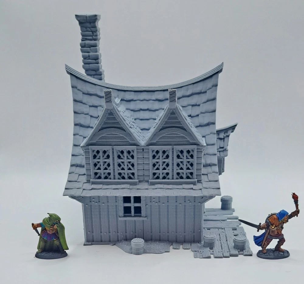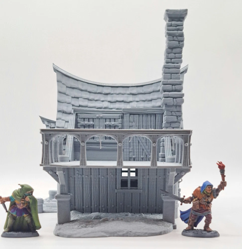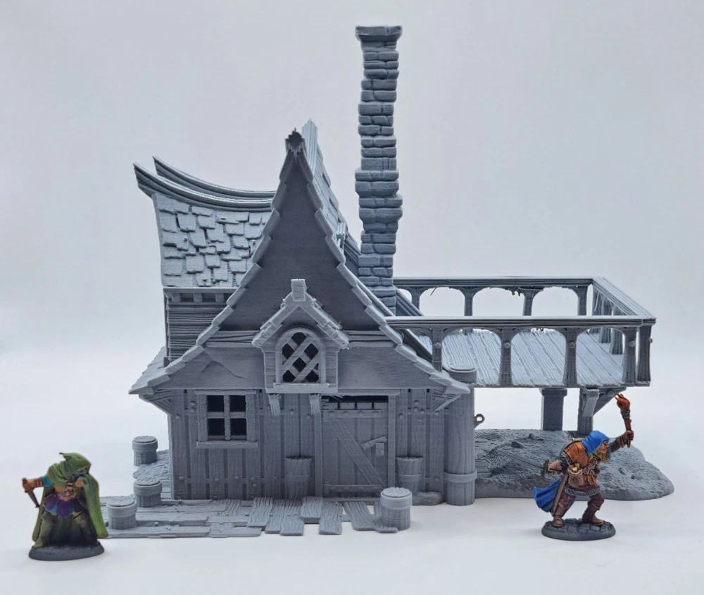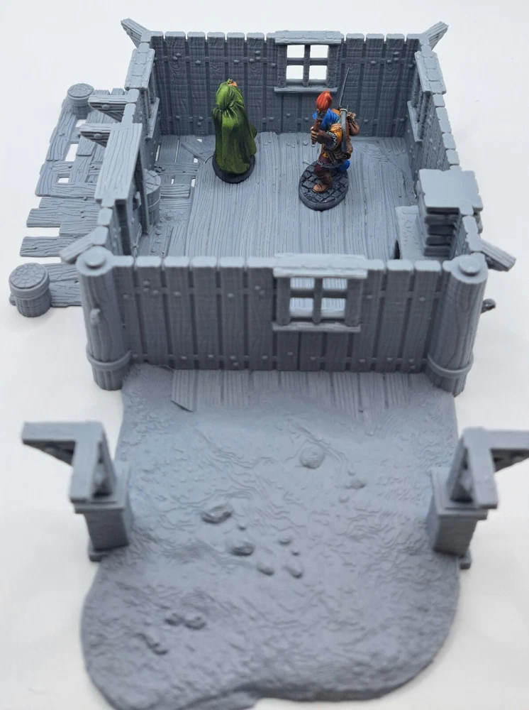 This 3d printed river hut is perfect for tabletop roleplaying games and scenery. It's a great addition to any miniature or war game collection. The intricate details and high-quality printing make it a must-have for any fantasy enthusiast. The house is ideal for creating a unique and exciting atmosphere for your games. This hut is 2 stories tall and is suitable for 28mm and 32mm miniatures. It is 3d printed with PLA plastic that ensure durability and longevity. Whether you're a seasoned player or just starting out, this building is sure to impress. Add it to your collection today and take your gaming experience to the next level! Please note: it will come unpainted in a random color, usually gray. However, it is very easily painted. Returns are accepted if the item does not match the listing description or is not accurate as advertised. If you have any questions or concerns please contact me. Accreditation Designer: 3dpforU Check them out on myminifactory. https://www.myminifactory.com/users/3dpforu I am a licensed printer of 3dpforU
