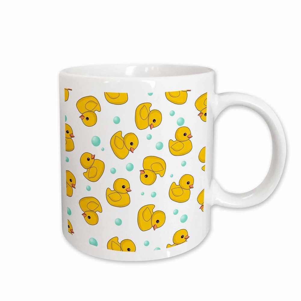 "Cute Rubber Ducky Ceramic Mug 11oz with Yellow Ducks & Soap Bubbles Design"
