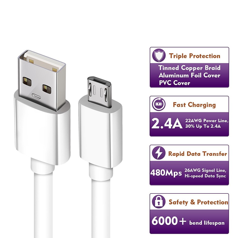 This micro USB cable is a lifesaver! It charges my Samsung phone super fast and works with all my other devices like power banks and Bluetooth speakers. The braided design feels durable, and the 6ft length gives me plenty of flexibility. Love that it comes in black or white—perfect for any setup. Highly recommend for anyone needing a reliable charging cable!