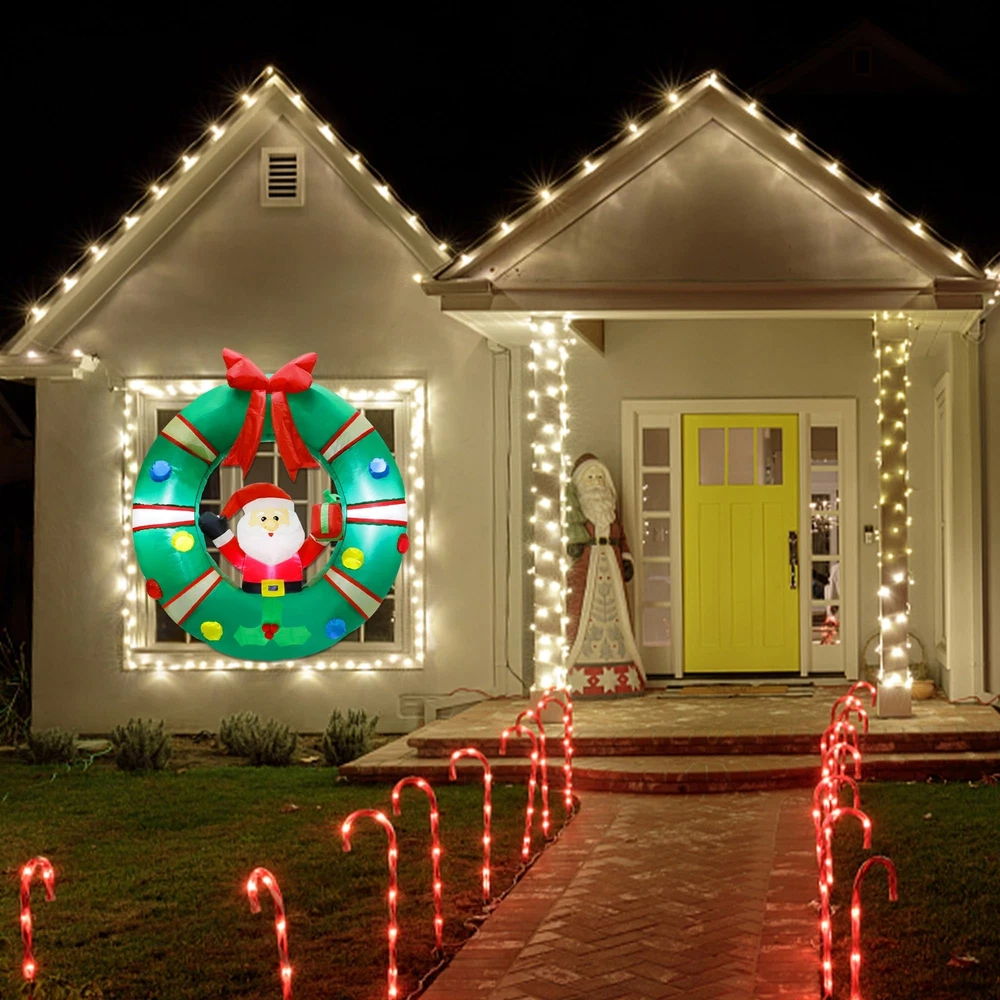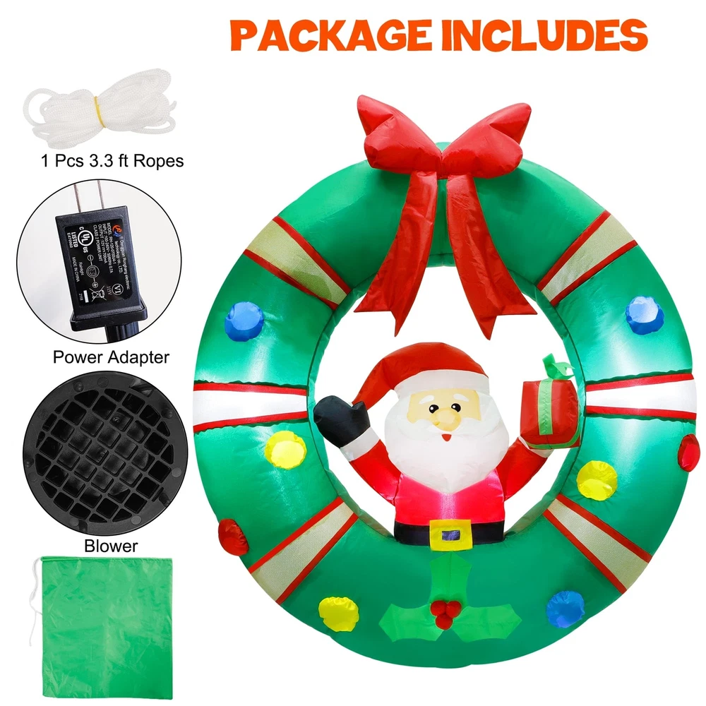 π Premium Materials: This inflatable Santa Claus sitting on the wreath is made of 100% polyester which is waterproof and sturdy enough so that you will never worry about any tears or holes. π Easy to Set Up: This blow up Santa Claus decorations with a built-in air blower, the inflatable wreath and Santa will blow up to about 3 foot tall within few minutes. This hanging Christmas wreath will come with 3.3 ft rope for hanging from door, porch, roofs, ceilings, trees, windows and so on. This wreath Christmas decoration will come with a drawstring storage bag, when not use, you can deflate it easily and store for next use without occupying much spaces. π Built-In LED Lights: The blow up yard decorations with 3 super bright pure white LED lights built inside that is realistic and sweet to light up your lawn or garden in the evening, create a Christmas festive atmosphere for the best attraction to kids, neighbors and guests, make your yard look perfect every Holiday night! π Perfect Christmas Yard Decoration: This 3ft Christmas wreath with a cute Santa Clause sitting on it, holding a Christmas gift box on his hand, it is the best choice as Christmas blow up yard decorations, it is the perfect size for Christmas outdoor garden yard decorations, will delight all your neighbors and guests. π Inflatable Christmas Decorations: This LED giant inflatable Santa is good to create a warm environment and increase the strong festive atmosphere, perfect for putting outdoors or indoors to dress up your Christmas Party. Ideal for Christmas outdoor, home, yard, garden, lawn, patio, porch decoration and more!