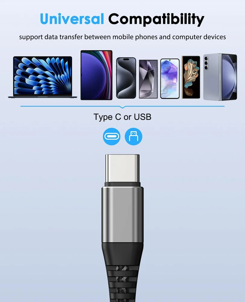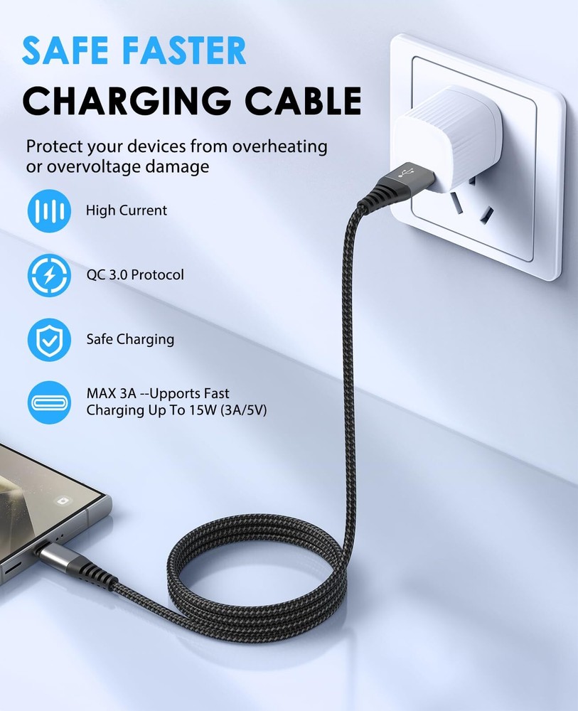 USB to USB C Cable, 2-Pack 3ft USB A to Type C Charger Fast Charging High Speed Nylon Cord Compatible with Samsung Galaxy A20, S20 S10 Plus S10E, Note 8, Moto, LG (Gray) Quick Data Transfer and Fast Charging: Support data transfer speeds of up to 480Mbps and 15W fast charging (3A/5V). High Quality Cable: Nylon braided with USB connectors rated to withstand over 40,000 bends. Premium Combo: Includes 2 high-quality nylon braided USB A to USB C cable 2.0 (3 feet each). Wide Compatibility: Compatible with all USB Type-C devices including Samsung Galaxy S23+/S23/S22/S22+/S20/S10/S10E/S10 Plus/S9/S9 Plus/S8/S8 Plus, Note 8/9/10/20, A10e/A51/A50/A12/A11, OnePlus 3T/2, Nexus 5X/6P, LG G5/G6/G7/G8/V20/V30/V35/V50/V60, Moto Z/Z2, Google Pixel, and other USB-C devices. High-quality service: Respond within 24 hours and promptly provide solutions! Quick Data Transfer and Fast Charging: Support data transfer speeds of up to 480Mbps and 15W fast charging (3A/5V). High Quality Cable: Nylon braided with USB connectors rated to withstand over 40,000 bends. Premium Combo: Includes 2 high-quality nylon braided USB A to USB C cable 2.0 (3 feet each). Wide Compatibility: Compatible with all USB Type-C devices including Samsung Galaxy S23+/S23/S22/S22+/S20/S10/S10E/S10 Plus/S9/S9 Plus/S8/S8 Plus, Note 8/9/10/20, A10e/A51/A50/A12/A11, OnePlus 3T/2, Nexus 5X/6P, LG G5/G6/G7/G8/V20/V30/V35/V50/V60, Moto Z/Z2, Google Pixel, and other USB-C devices. High-quality service: Respond within 24 hours and promptly provide solutions! Shipping from the USA All of our products are shipped from the USA, ensuring quick delivery to your destination. Payment We offer the following payment methods: PayPal, credit card, bank transfer, and eBay's secure payment system. Free Shipping & Free Returns Shipping within the USA is FREE. Additionally, any return is absolutely free for you. Risk-Free Purchase You have the option to return an item within 30 days without any justification. We cover the return shipping costs! Fast Shipping We ship immediately upon receipt of payment. Generally, the package is delivered within 2-3 days in the USA. If it takes longer, we will contact you. Quality and Costs Made in Europe, USA, China No customs fees or additional charges Total satisfaction guarantee Invoice with declared VAT available upon request in .pdf format Feedback Your feedback is very important to us. After you pay for your purchase, you will automatically receive positive feedback from us.