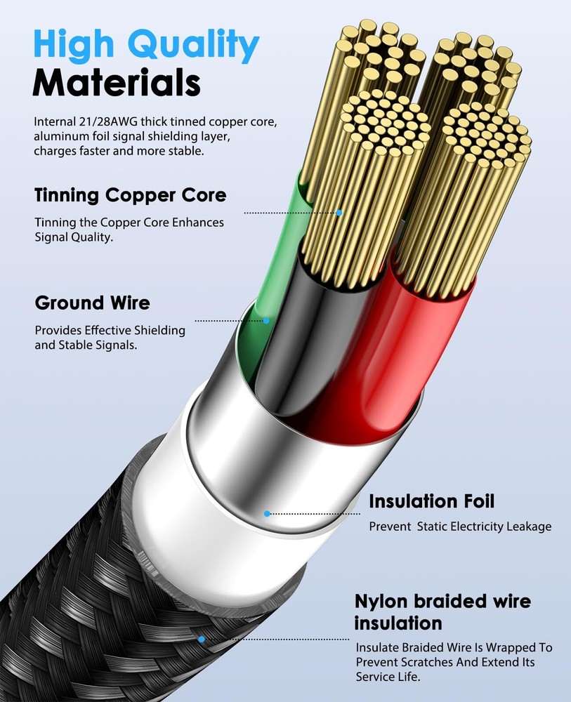 $ 12.145-Pack Braided USB-C Cables 3FT/6FT/10FT Fast Charging A to C