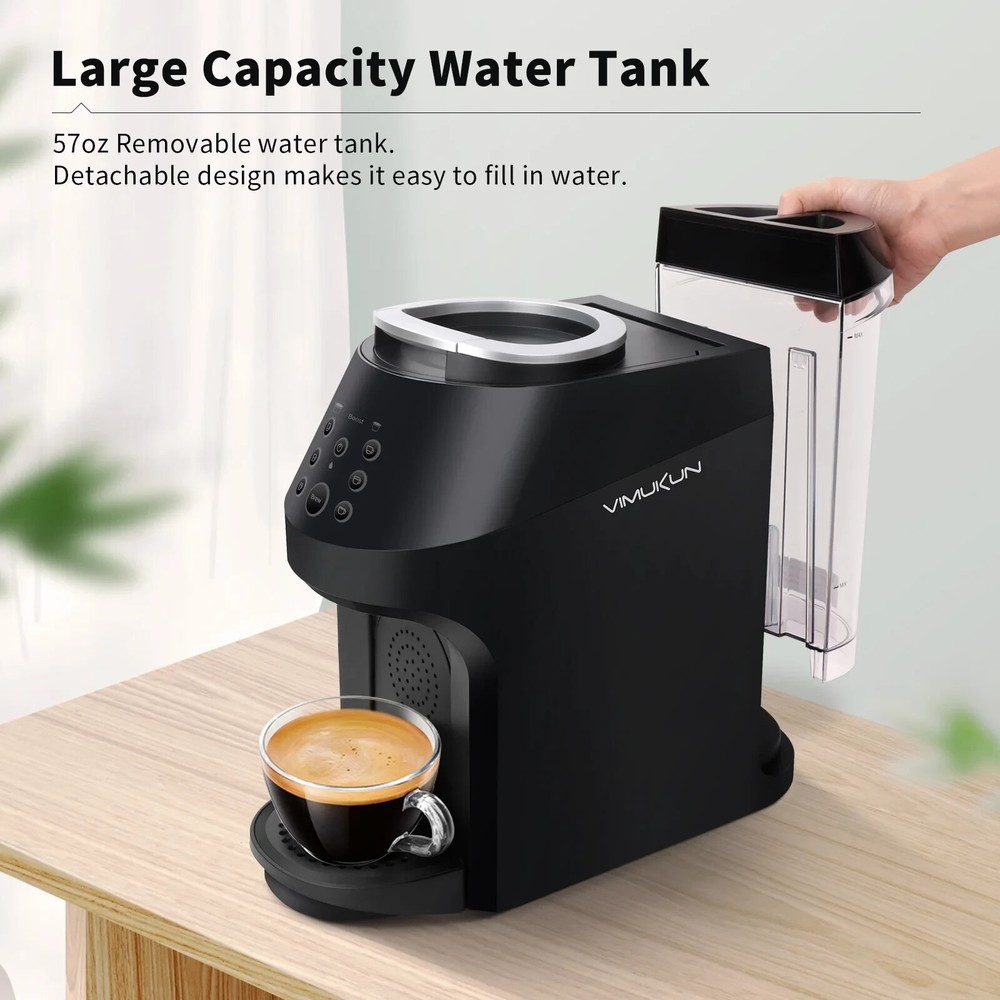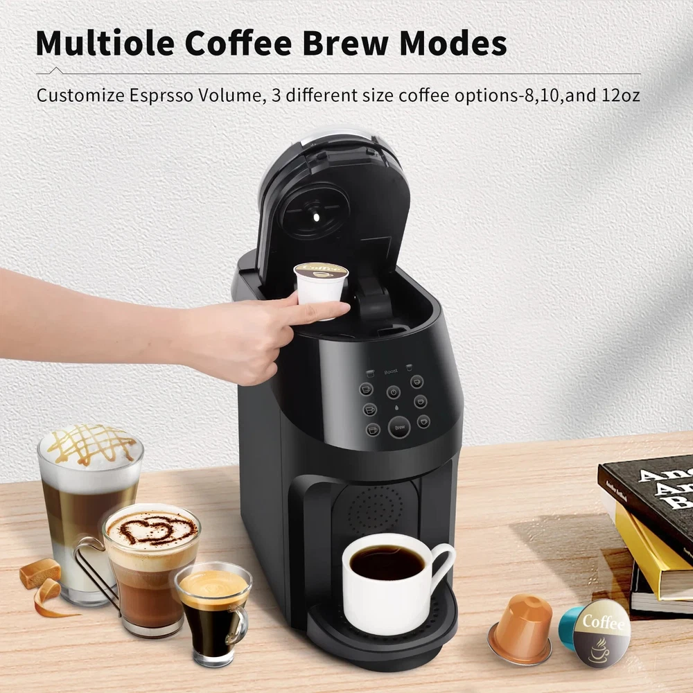 3-in-1 Coffee & Espresso Maker – Compatible with Nespresso OriginalLine, K-Cup Pods & Ground Coffee, 19 Bar Pump, 6 Brew Sizes Upgrade your coffee experience with this 3-in-1 Multifunctional Coffee Maker , designed for ultimate convenience and versatility. Whether you love the ease of K-Cups , the rich taste of Nespresso OriginalLine pods , or the customization of ground coffee , this machine lets you brew your favorite drinks with ease! Key Features: πŸ”₯ 3-in-1 Brewing Options – Compatible with K-Cup pods, Nespresso OriginalLine capsules, and ground coffee using the included reusable filter. πŸ”₯ Customizable Coffee Sizes – Brew your perfect cup with 6 size options , including 8oz, 10oz, and 12oz for K-Cups, and Ristretto, Espresso, and Lungo for Nespresso pods. πŸ”₯ Large 57oz Water Reservoir – Brew up to 5 cups before needing a refill, ideal for busy mornings or entertaining guests. πŸ”₯ 19-Bar High-Pressure Pump – Delivers professional-grade espresso , extracting rich flavors and aromas for cafΓ©-quality coffee. πŸ”₯ Fast Brewing Time – Enjoy a hot cup of coffee in just 1 minute , with an optimal brewing temperature of 185Β°F for great taste. πŸ”₯ Easy to Clean & Maintain – Features a removable drip tray and water tank for hassle-free cleaning. Includes a built-in descaling function to keep your machine fresh. πŸ”₯ Sleek & Modern Design – Compact and stylish, perfect for any kitchen or office space. Troubleshooting Tips: β˜• Nespresso capsules don’t drop properly into the used capsule container? Ensure the top lid is fully open before closing. Empty the used capsule container if full. β˜• Machine dispenses only water, no coffee? Check that you selected the correct function for the capsule type. Press the correct button for K-Cups or Nespresso pods. β˜• Flashing β€œ8oz” and β€œ10oz” indicators? The machine has brewed 300 cups and needs descaling. Press and hold both β€œ8oz” and β€œ10oz” buttons for 3 seconds to start descaling mode. β˜• Flashing β€œ10oz” and β€œ12oz” indicators? This is a high-temperature warning . Let the machine cool down before resuming operation. β˜• Water shortage reminder flashing even when the tank has water? If less than 12oz of water remains, refill the tank and restart the machine. Enjoy barista-quality coffee at home with this all-in-one coffee and espresso machine!