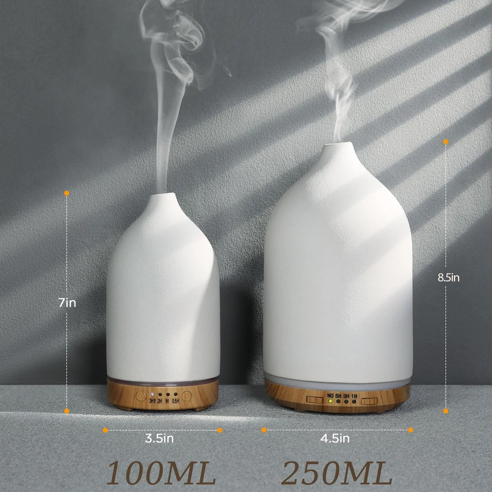 Ceramic Diffuser,Stone Essential Oil Diffuser, Ultrasonic Aromatherapy Diffusers,essential oils for defusers for home/bedroom (100ML) ๐™€๐™ก๐™š๐™ซ๐™–๐™ฉ๐™š ๐™”๐™ค๐™ช๐™ง ๐™Ž๐™ฅ๐™–๐™˜๐™š ๐™ฌ๐™ž๐™ฉ๐™ ๐™€๐™ก๐™š๐™œ๐™–๐™ฃ๐™˜๐™š ๐™–๐™ฃ๐™™ ๐™Ž๐™š๐™ง๐™š๐™ฃ๐™ž๐™ฉ๐™ฎ. ๐˜พ๐™ง๐™š๐™–๐™ฉ๐™š ๐™– ๐™จ๐™ค๐™ค๐™ฉ๐™๐™ž๐™ฃ๐™œ ๐™–๐™ข๐™—๐™ž๐™–๐™ฃ๐™˜๐™š ๐™๐™š๐™ก๐™ฅ๐™จ ๐™ฎ๐™ค๐™ช ๐™ช๐™ฃ๐™ฌ๐™ž๐™ฃ๐™™ ๐™–๐™›๐™ฉ๐™š๐™ง ๐™– ๐™ก๐™ค๐™ฃ๐™œ ๐™™๐™–๐™ฎ ๐™ฌ๐™ž๐™ฉ๐™ ๐˜ฝ๐™ค๐™ญ๐™ž๐™ฃ๐™œ ๐™˜๐™š๐™ง๐™–๐™ข๐™ž๐™˜ ๐™š๐™จ๐™จ๐™š๐™ฃ๐™ฉ๐™ž๐™–๐™ก ๐™ค๐™ž๐™ก ๐™™๐™ž๐™›๐™›๐™ช๐™จ๐™š๐™ง. ๐™†๐™ž๐™˜๐™  ๐™—๐™–๐™˜๐™  ๐™ค๐™ฃ ๐™ฉ๐™๐™š ๐™˜๐™ค๐™ช๐™˜๐™, ๐™ฉ๐™–๐™ ๐™š ๐™– ๐™™๐™š๐™š๐™ฅ ๐™—๐™ง๐™š๐™–๐™ฉ๐™, ๐™–๐™ฃ๐™™ ๐™›๐™š๐™š๐™ก ๐™ฉ๐™๐™š ๐™ง๐™š๐™ก๐™–๐™ญ๐™–๐™ฉ๐™ž๐™ค๐™ฃ! ๐™๐™ฅ๐™œ๐™ง๐™–๐™™๐™š ๐™๐™š๐™˜๐™ ๐™›๐™ค๐™ง ๐˜ฝ๐™š๐™ฉ๐™ฉ๐™š๐™ง ๐™‹๐™š๐™ง๐™›๐™ค๐™ง๐™ข๐™–๐™˜๐™š: Transform your space with the 2.4MHz atomizer and high-speed 3600 RPM DC fan. Experience ultra-fine mist and swift, aromatic diffusion at the push of a button. Instantly indulge in a luxurious, relaxing ambiance! ๐˜พ๐™ง๐™š๐™–๐™ฉ๐™š ๐™”๐™ค๐™ช๐™ง ๐™Š๐™ฌ๐™ฃ ๐™Ž๐™˜๐™๐™š๐™™๐™ช๐™ก๐™š: No need to worry about midnight wake-ups to switch off the diffuser. Set the timer for 30 minutes to 3 hours, or let it fill the room for up to 4.5 hours. Sit back, relax, and drift into dreamland without a care! ๐™Š๐™ฅ๐™ฉ๐™ž๐™ค๐™ฃ๐™–๐™ก ๐™‰๐™ž๐™œ๐™๐™ฉ ๐™‡๐™ž๐™œ๐™๐™ฉ ๐™ฌ๐™ž๐™ฉ๐™ 7 ๐˜พ๐™ค๐™ก๐™ค๐™ง๐™จ: Add a few drops of your favorite essential oil to this aromatherapy diffuser and select a night light color that matches your mood. Clear your mind and savor the natural scent. ๐™€๐™ก๐™š๐™œ๐™–๐™ฃ๐™ฉ ๐˜พ๐™š๐™ง๐™–๐™ข๐™ž๐™˜ ๐™›๐™ค๐™ง ๐™‹๐™š๐™ง๐™›๐™š๐™˜๐™ฉ ๐™‚๐™ž๐™›๐™ฉ ๐™„๐™™๐™š๐™–: The elegant ceramic design effortlessly blends with your home decor while infusing your space with calming fragrance. Its chic look and premium packaging also make it a perfect, stylish gift choice! ๐™‰๐™ค ๐˜ฟ๐™ž๐™จ๐™ฉ๐™ช๐™ง๐™—๐™–๐™ฃ๐™˜๐™š ๐™’๐™๐™š๐™ฃ ๐™Ž๐™ก๐™š๐™š๐™ฅ๐™ž๐™ฃ๐™œ: Enjoy a restful night with a soothing aroma and silent operation. You can also deactivate the night light for an entirely uninterrupted sleep environment! ๐™‰๐™ค ๐™’๐™ค๐™ง๐™ง๐™ž๐™š๐™จ ๐™–๐™—๐™ค๐™ช๐™ฉ ๐™Ž๐™–๐™›๐™š๐™ฉ๐™ฎ: Auto Shut-Off when water level is low, for no need to worry about safety issues.