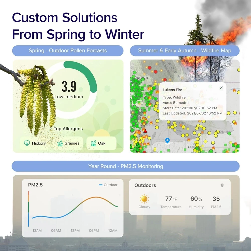 Application: Whole Room, Personal Power: 45 W Batteries Required: No Filtration Technology: True HEPA, Activated Carbon Wattage: 45 Watts Number of Cleaning Stages: 1 Power Source: Electrical Filter Life: 12 Months Contaminants Captured: Allergens, Dust, Pollen, Bacteria, Chemicals, Mold, Odors, Pet Dander, Viruses Noise Level: 27 Db Item Depth: 8.1 in Controller Type: Amazon Alexa Control Style: App Control, Voice Voltage: 120 V Features: Quiet Operation, Digital Display, Smart Sensor, Filter Replacement Indicator, Remote Control, Timer, Nighttime/Sleep Mode Particle Retention Size: 0.1 Micron Room: Any Room, Bedroom, Living Room, Kitchen, Home Office/Study Smart Home Compatibility: Amazon Alexa, Google Home Number Of Pieces: 1 Number of Speeds: 4 Product Dimensions: 8.1"d X 8.1"w X 12.6"h Type: Portable Mounting: Floor UPC: Does Not Apply Smart Home Protocol: Wi-Fi Material: Plastic Assembly Required: Yes Humidification Method: None Color: Black Clean Air Delivery Rating (CADR): 501-550 Item Weight: 6.6 lb gtin13: Does Not Apply Timer Control: Timerless Finish: Matte Sensor Technology: Filter Life Monitor Operating Sound Rating: 27 dB Brand: Unbranded Coverage: 916 sq ft Floor Area: 915 Square Feet