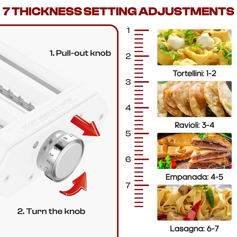 Discover the art of homemade pasta with the 3-in-1 kitchenaid pasta attachment set. This sleek and sturdy pasta kitchenaid attachment combines a pasta roller, spaghetti cutter, and fettuccine cutter into one convenient tool, perfect for creating fresh pasta with ease. Made from high-quality, food-grade aluminum alloy and protected by a durable plastic shell, it ensures consistent and efficient performance. Pasta roller kitchenaid attachment with 7 adjustable thickness settings, you can craft pasta sheets to your exact preference, from thin spaghetti to hearty lasagna layers. kitchen aid pasta maker attachments are effortless to use; simply attach it to your mixer and watch it transform dough into delightful noodles. Cleaning is a breeze—just brush or wipe away excess flour or dough with a dry cloth. Don't let the joy of homemade pasta be a distant dream; bring the tradition and flavor into your kitchen with this must-have accessory Upgrade Your KitchenAid Mixer with a 3-in-1 KitchenAid pasta attachment. As a professional-grade kitchenaid pasta maker attachment, it integrates three functions: a pasta roller, fettuccine cutter, and spaghetti cutter. This makes it easy and convenient to serve your family and friends with fresh homemade pasta and noodles in just minutes. High-Quality Materials: This kitchen aid pasta maker blade is crafted from food-grade aluminum alloy, including a pasta roller, spaghetti cutter, and fettuccine cutter. The design ensures uniform power transmission for a superior pasta-making experience. The protective shell of the pasta attachment for KitchenAid stand mixer is made from high-quality, wear-resistant plastic. The overall structure is aesthetically pleasing, sturdy, and compact. Save Time and Effort: This 3-in-1 pasta attachments for kitchenaid mixer takes you from dough to pasta in one fell swoop, with no need to replace other attachments. With this versatile kitchen aid pasta attachment for kitchenaid stand mixer, you can create delicious noodles, saving you a lot of time and effort. 7 Thickness Settings: The kitchenaid pasta roller has 7 adjustable thicknesses ranging from 0.44mm to 2mm, making it easy to create pasta sheets of your desired thickness. kitchen aid pasta roller attachment will be your right hand when making Spaghetti, Fettuccine, Lasagna, Ravioli, Penne and more. Easy to Use and Clean: Simply attach the kitchen aid mixers accessories to the power hub of any stand mixer and you're ready to go. Cleaning is also very convenient, you just need to use a brush or a dry soft cloth to clean the flour or dough off the machine. What you need to pay attention to is to keep the kitchenaid mixer pasta attachments dry and do not wash it with water.