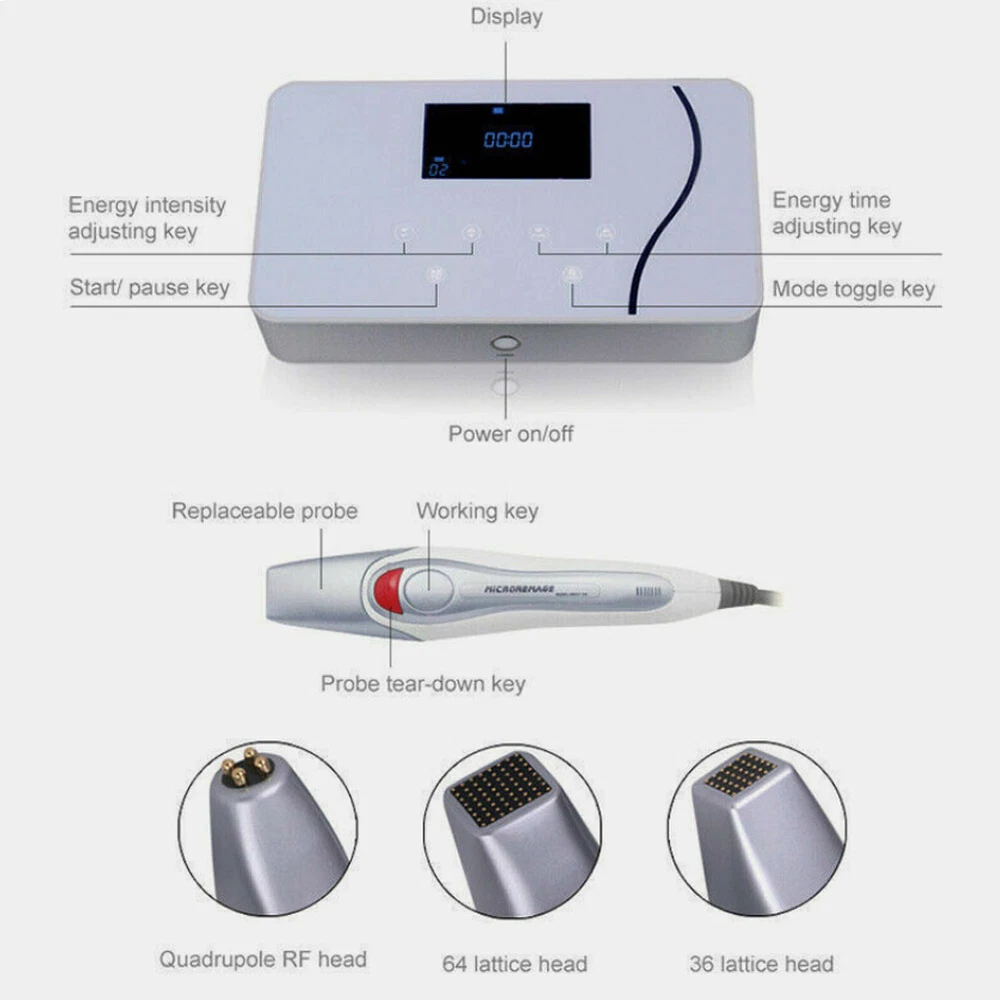 Intelligent Fractional RF Radio Frequency Face Lifting Skin Care Facial Machine Mini Fractional RF Skin Tightening Anti-Aging Skin Rejuvenation Facial Machine Radio Frequency Skin Tightening Wrinkle Removal Dot Matrix RF Salon Use Machine Fractional Lattic Infiltration RF Dot Matrix Skin Lift Wrinkle Remove Machine Fractional RF Dot Matrix Anti-aging Wrinkle Removal Facial Skin Care Machine Intelligent Fractional Machine Radio Frequency Face Lift Skin Care Salon Device Fractional RF Radio Frequency Skin Face Rejuvenation Anti-Aging Beauty Machine Home Use Fractional RF Radio Frequency Machine Dot Matrix Lattice Skin Tighten Fractional Radio Frequency Facial Skin Tighten Anti-Aging Beauty Salon Machine Intelligent Fractional RF Radio Frequency Dot Matrix Skin Care Massager Machine Fractional RF Radio Frequency Face Lift Skin Antiaging Tighten Beauty Equipment Function : 1. Skin tightening 2. Deep and light Wrinkles Eliminating 3. Improving skin-elasticity and skin-shine 4. Pregnancy line restoring 5. Skin- metabolism improving 6. Focusing Radio-frequency, immediate effect 7. Anti-aging for whole body 8. divide bacterium and diminish inflammation 9. Improve pore-expanding 10. Shape beautiful figure Specifications: Operating 11. Pregnancy line restoring Introduction There are plenty of non-invasive cosmetic procedures that promise to turn back time, but not all of them are as reliable as Fractional RF , It's no wonder this radio frequency procedure has garnered a host of celebrity fans yet,Fractional RF is a non-invasive radio frequency therapy that can address the look and feel of aging skin on many areas of your body. Fractional RF treatments are customized to your needs, and typically require minimal recovery time. It’s a great solution if you want your skin to look sleeker, smoother and younger, but can’t afford a lot of time away from work or your social life.Aging affects us all – the way we act, the way we feel, and definitely the way we look. But with advancements in skin care, you can have a say in the way aging affects your skin – and maybe even get back to the way you looked not so long ago. Fractional RF is a proven, unique radio frequency treatment that can help improve the appearance of sagging or loose skin, giving you a smoother, sleeker and younger look and feel. Fractional RF works in just one treatment with little down time and delivers a natural looking result. It’s you, just younger looking and more confident. 3 Kinds of Technology Emergency Response: The ultrashort wave radio frequency electric field form cylindrical focusing in the depth of the skin around 2.6 ~ 3 mm (to make it as firm as the foundation ), the dermal tissue after strong impact damaged and capillaries which has been stimulated will think in mistake for tissue has injured , then will send the the signal for heal help , dermal tissue can produce a large amount of collagen, the collagen molecules gradually combined into an orderly collagen, so as to achieve the effect of firming wrinkles. Ionization infiltration: Ultrashort wave electric field can change the membrane cross-section point distribution, influence the membrane surrounding electrons and ions concentration, thus improving the permeability of cell membrane, the water of the cell membrane by ultrashort wave electric field ion channel is opened quickly, strengthen cell permeability.In ultrashort wave form at the same time the focus under the action of gravity and magnetic field on the epidermis of ionized water and nutrition it easily penetrate into dermal tissue. Fat Dissolve Response When the magneto electric effect on skin, hypodermic and adipose and muscle tissue heating is the ratio of 8:1. Adipose tissue after absorbing energy by softening, contraction, decomposition, make the skin tight and elastic. Fractional RF is effective on The Eyes Hooding,fine lines and even our brow line can make us look worn-down.Fractional RF treats the upper and lower eyelids to help you look more youthful and restedAs you age, your skin's collagen and elastic simply break down faster than your body can rebuild them, causing your skin to lose elasticity—which often leads to wrinkles, and pockets of loose, sagging skin. The effects of age are typically most noticeable around the eyes, where skin is delicate and thin. Over time it will start to lose elasticity, beginning to droop and wrinkle, even creating heavy “ hoods” that make you look older. The Face As we age, phrases like “turkey neck”, loose jowls, sagging skin and “what happened to my jawline?” creep in. Fractional RF smooths lines and wrinkles and remodels collagen for the overall health of the skinAfter a lifetime of laughing, smiling, furrowing brows or lighting up in surprise, the skin on your face can really show the signs of aging.Your face is also the area of your skin most exposed to the elements, bearing the brunt of environmental factors like sun damage.Over time, the smooth, sleek look you once had breaks down, becoming uneven, and lined with wrinkles. Your features lose definition – especially in the jawline, lips and neck. The Body Aging does not just affect the skin on our faces, our bodies see the effects too, with crepey, sagging skin and unwanted bulges and dimples. Fractional RF is a non-invasive way to smooth the skin on our bodies and even temporarily improve the appearance of cellulite .Skin is our bodies’ largest organ, adapting everywhere to the changes in your shape, activities and lifestyle. As we age, our skin’s resiliency and elasticity decreases – especially after major life events like childbirth – and sometimes never returns to that smooth skin feeling. For most people, age brings with it areas of uneven or unsightly bulges that just can’t be remedied with exercise or diet. It’s skin – not fat – that often gets in the way of achieving the youthful look we all desire. THERMAGE Mode 1: thermal: you can feel hot. The temperature can reac