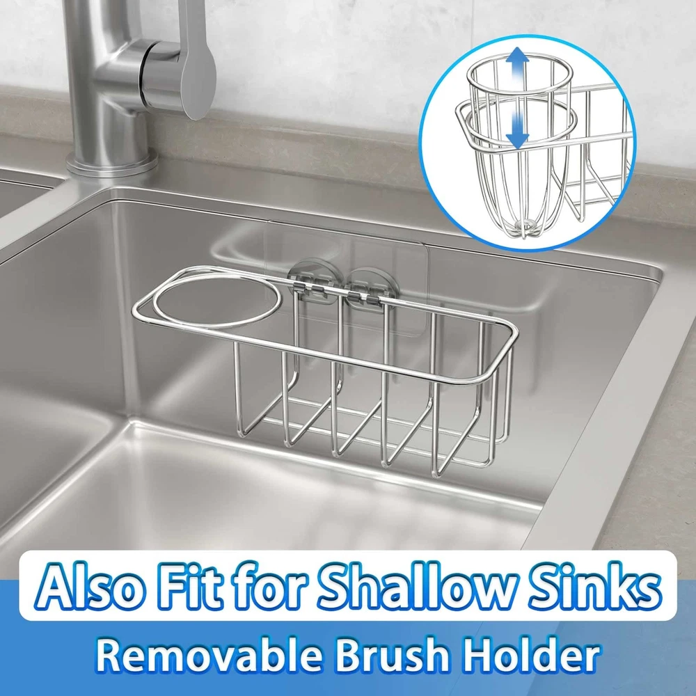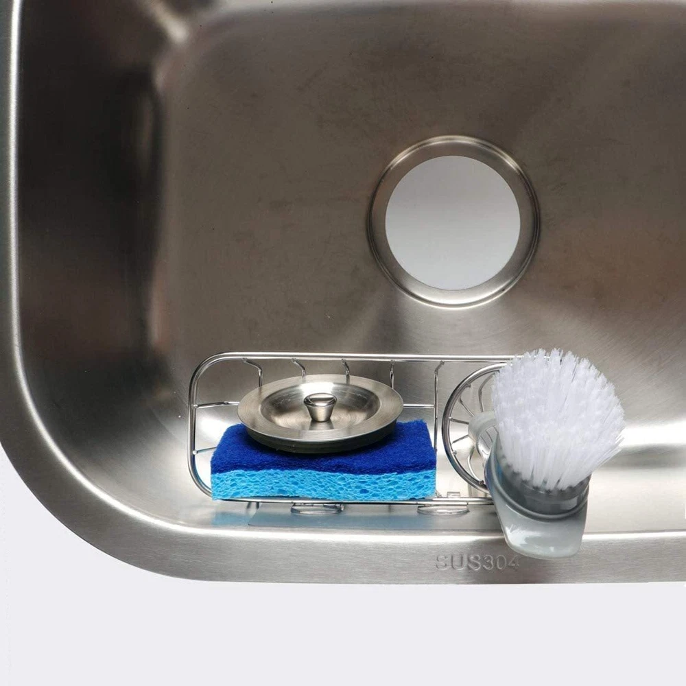 3-in-1 Stainless Steel Sponge and Dish Brush Holder for Kitchen Sink Organizer Caddy