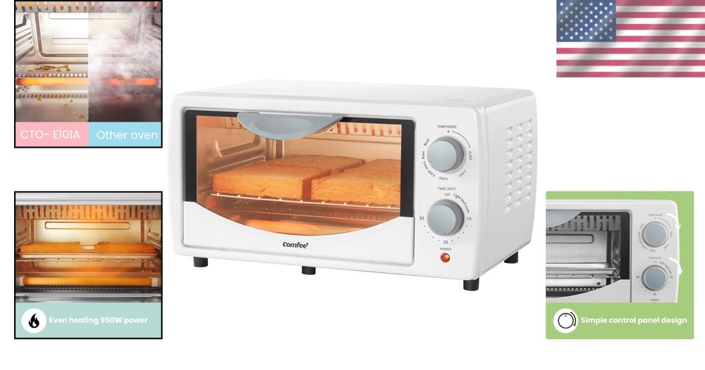 Brand: Unbranded Special Feature: Automatic Shut-off Maximum Timer Setting: 30 min Door Style: Dropdown Door Item Weight: 5.29 lbs Type: Countertop Oven Door Material Type: Tempered Glass Included Components: 1 Toaster Oven, 1 Baking Pan, 1 Baking Rack gtin13: Does Not Apply Number Of Shelves: 2 Finish: Painted Color: White Model: Countertop Toaster Oven Voltage: 120 V Appliance Uses: Bake, Broil, Toast Control Type: Knob UPC: Does Not Apply Size: 4 Slice Modern White Finish Type: Painted Power: 950 W Temperature Range: 150 - 450 Degrees Fahrenheit Features: Auto Shut-off, Bake, Broil, Toast, Automatic Shut-off, Non-stick Baking Rack, Baking Pan, Detachable Crumb Tray Power Source: Electric Product Dimensions: 11.81"d X 14.25"w X 7.91"h Material: Stainless Steel
