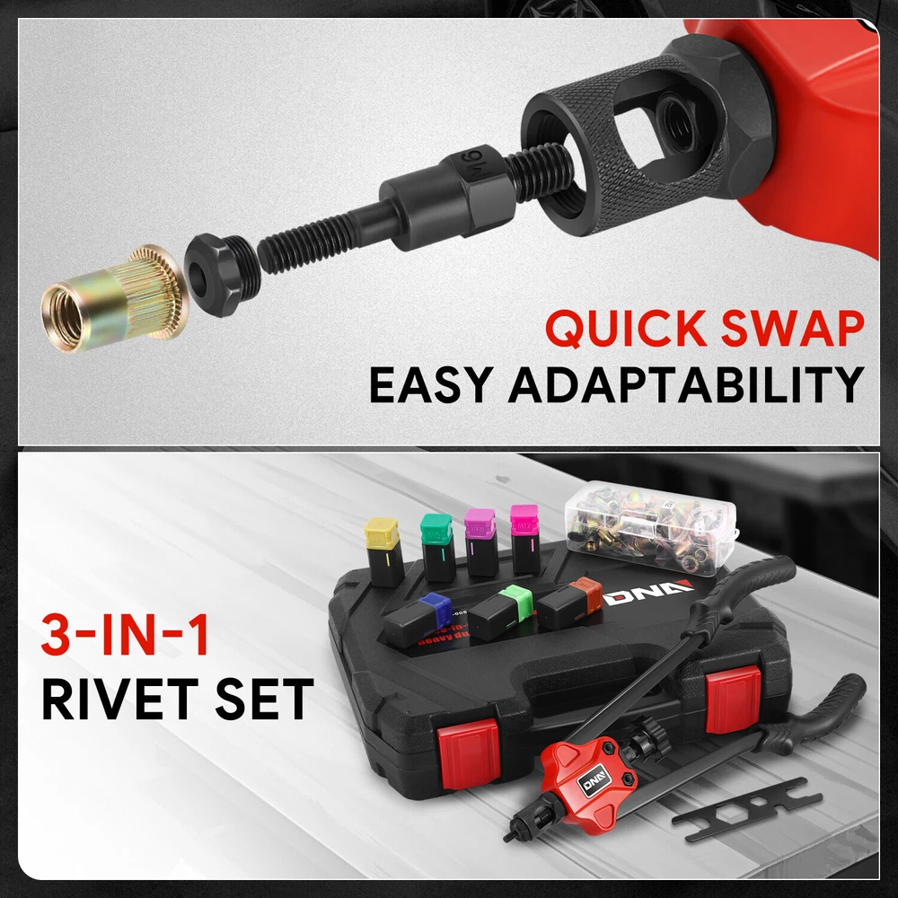 [3-in-1]Heavy Duty 14" Wrench SAE Mandrels Metric Rivet Nut Gun Tool Set w/ Case