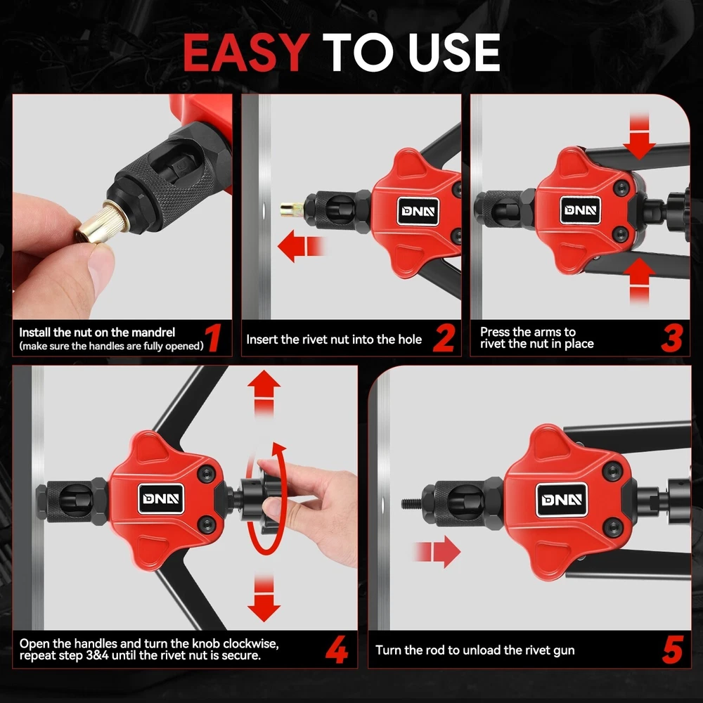 Case Included: Yes Features: Easy to Replace Finish: Powder-Coated Color: Black / Red Case Type: Box Exterior: ‎Stainless Steel gtin13: Does not apply Superseded Part Number: SDD-TOOLS00562 Type: Hand Riveter Set Tools Included: Mandrels, Rivet Nuts, Wrench, Rivet Brand: Speed Daddy OE/OEM Part Number: SDD-TOOLS00562 Interchange Part Number: SDD-TOOLS00562 Product Dimensions: ‎15.5 x 12 x 3.8 inches Manufacturer Part Number: SDD-TOOLS00562 UPC: Does not apply Number of Pieces: 80