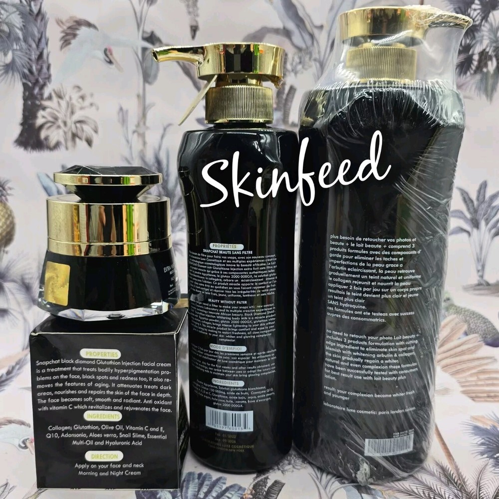 3pc. Lait snaptchat Diamant noir Set. Lotion, Body Wash & Face Cream AUTHENTIC.