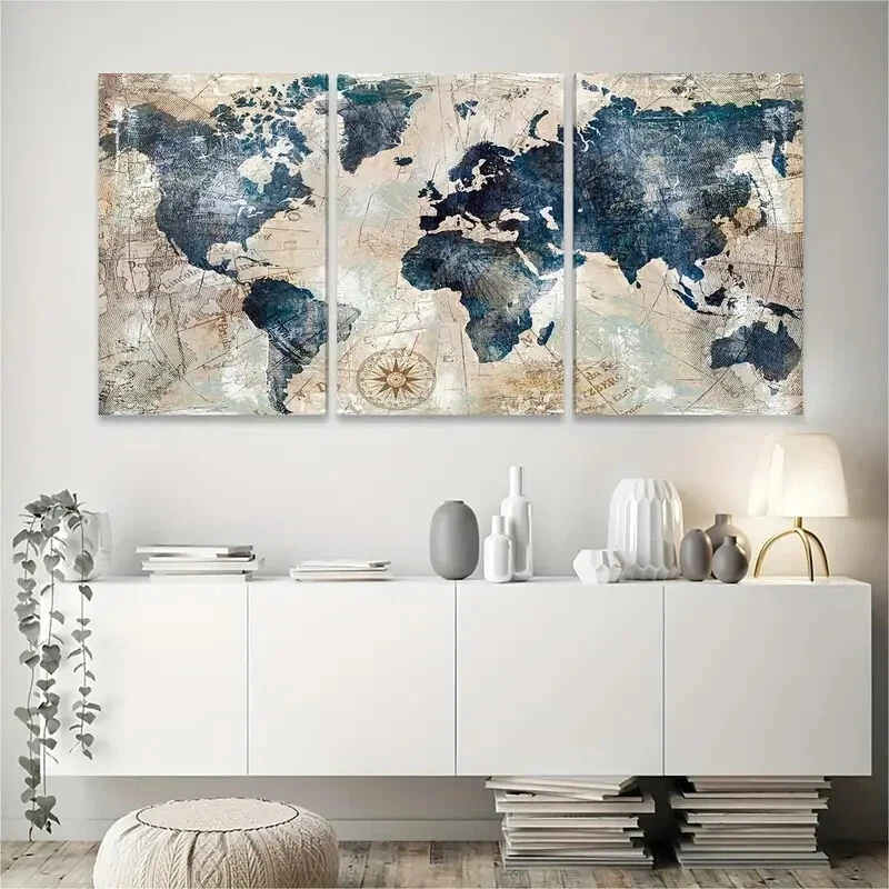 3pcs Abstract Map Decorative Modern Art Canvas Unframed