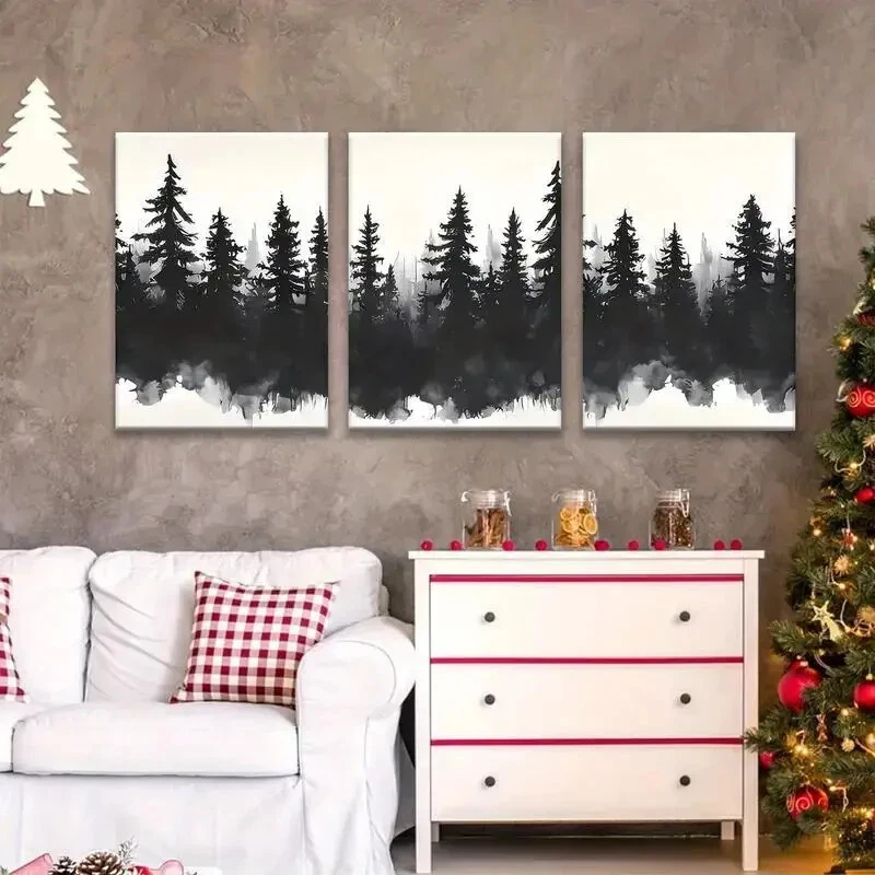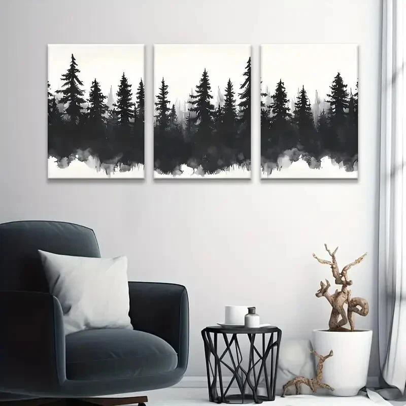 3pcs Black & White Forest Vintage Wall Art Canvas Unframed