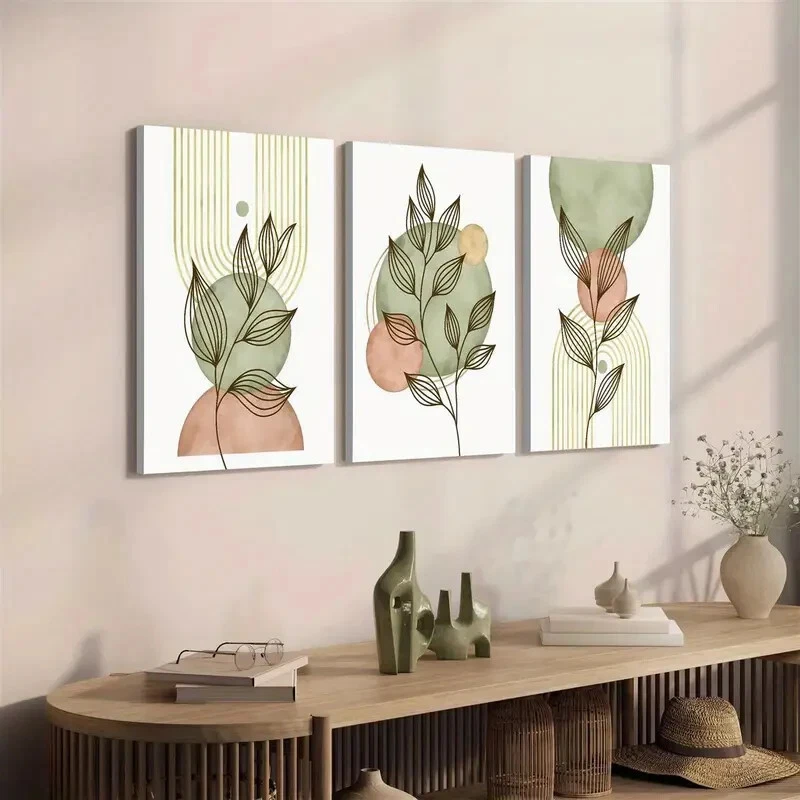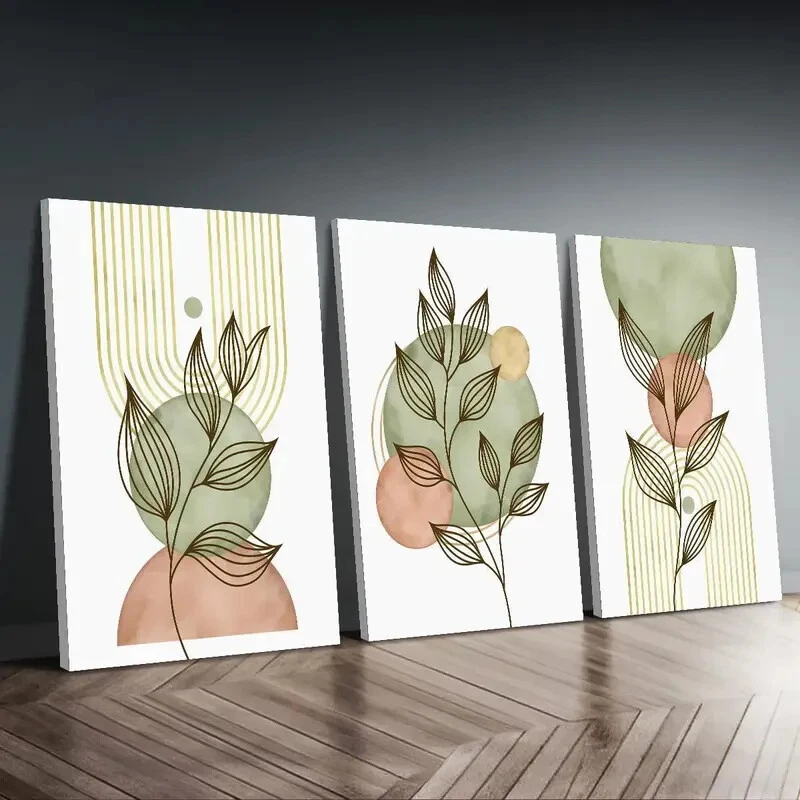 3pcs Bohemian Modern Medieval Plant Wall Art Canvas Unframed