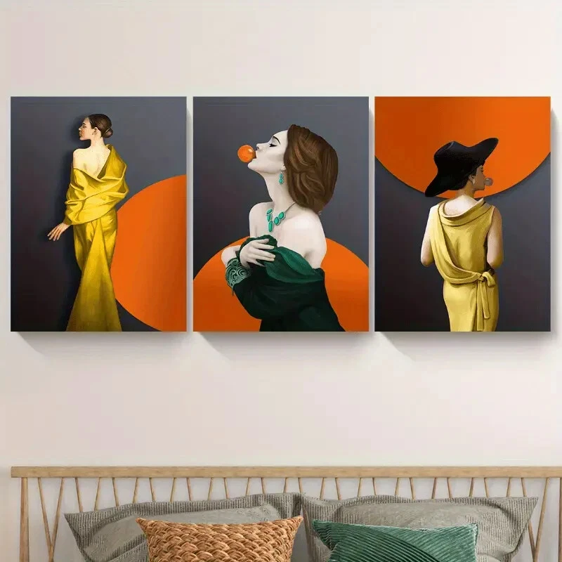 3pcs Fashion Women's modern Wall Arts Canvas Unframed
