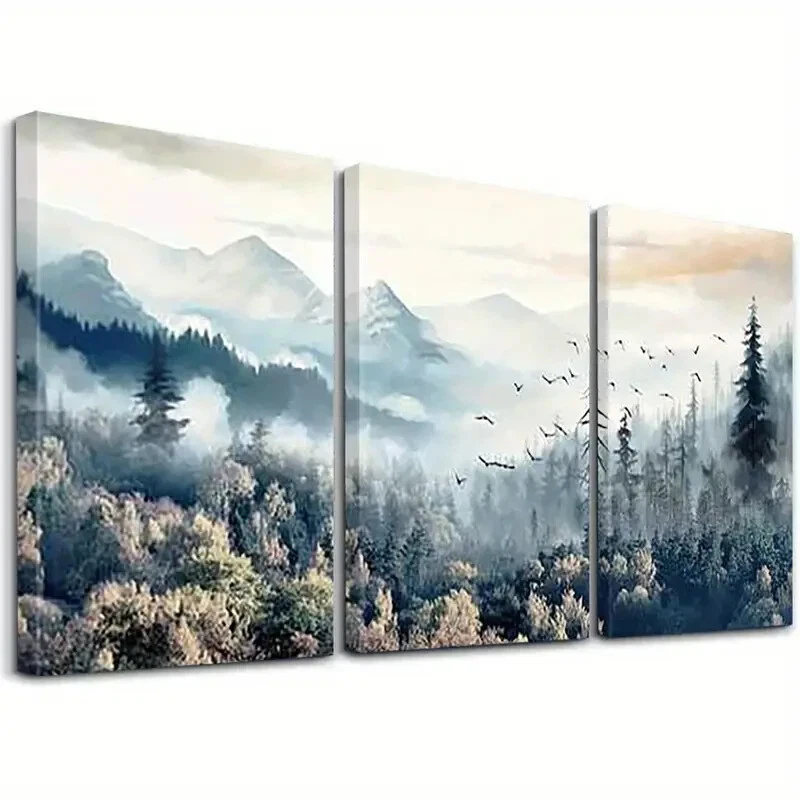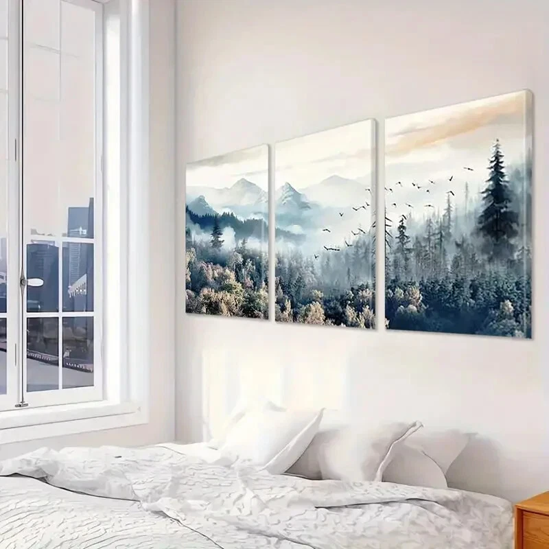 3pcs Mistry Forest Mountain & Flying Birds Nature View Canvas Unframed