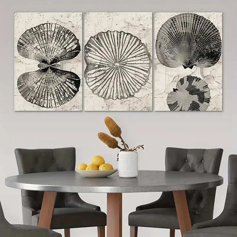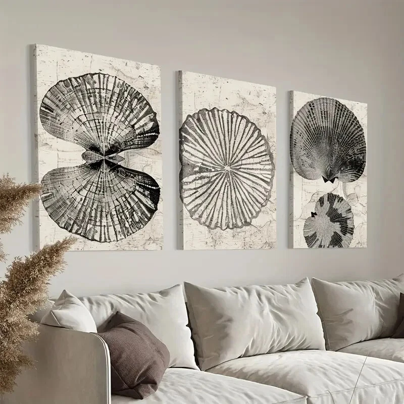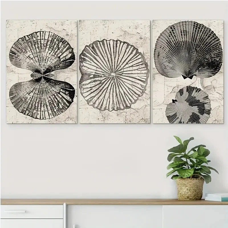 3pcs Sea Shell Modern Black & White Wall Art Canvas Unframed