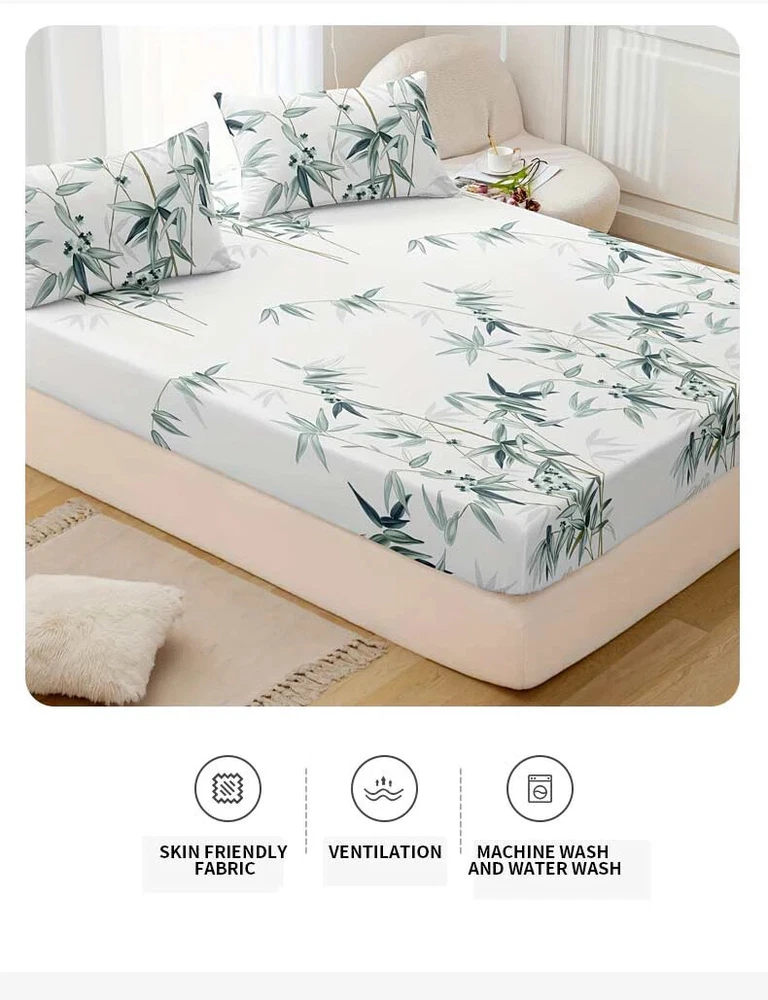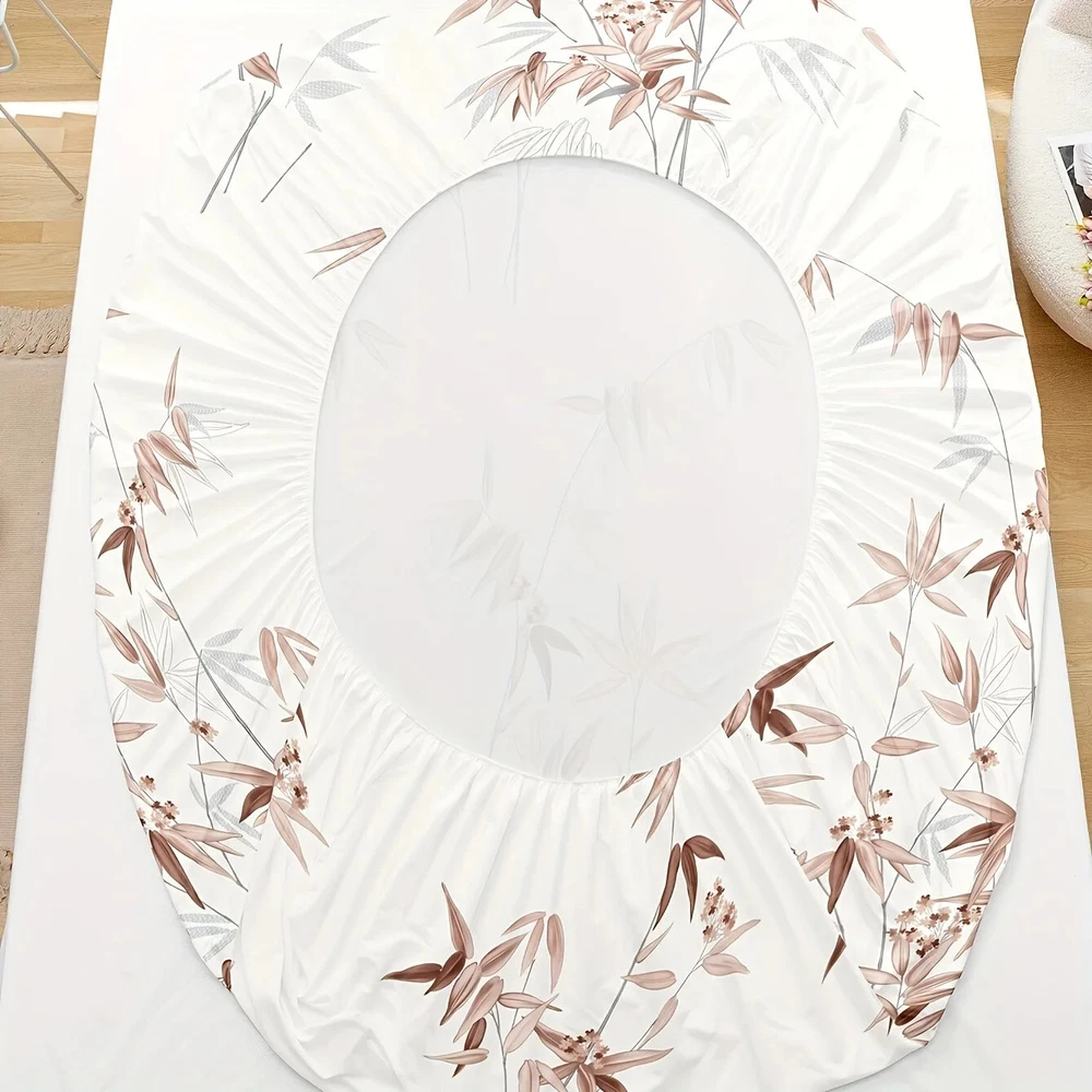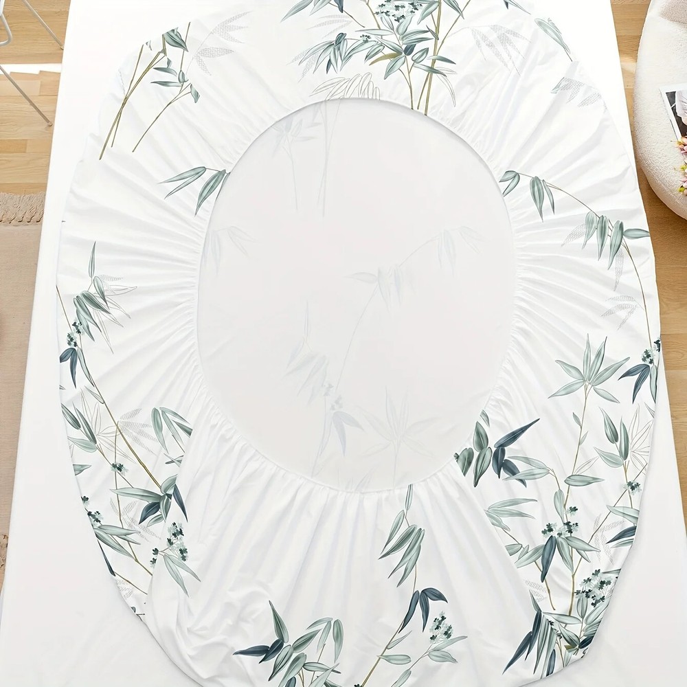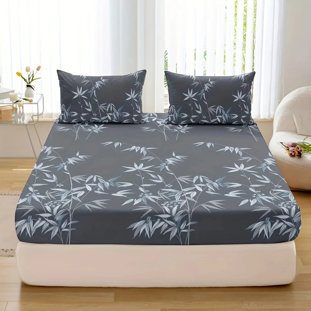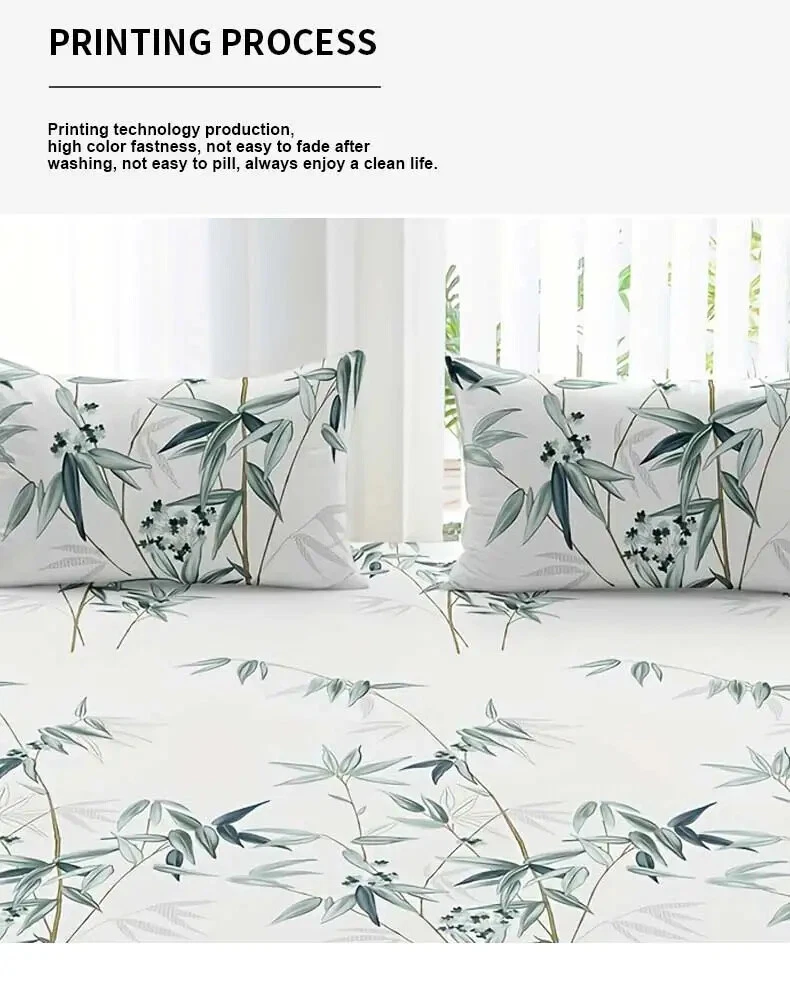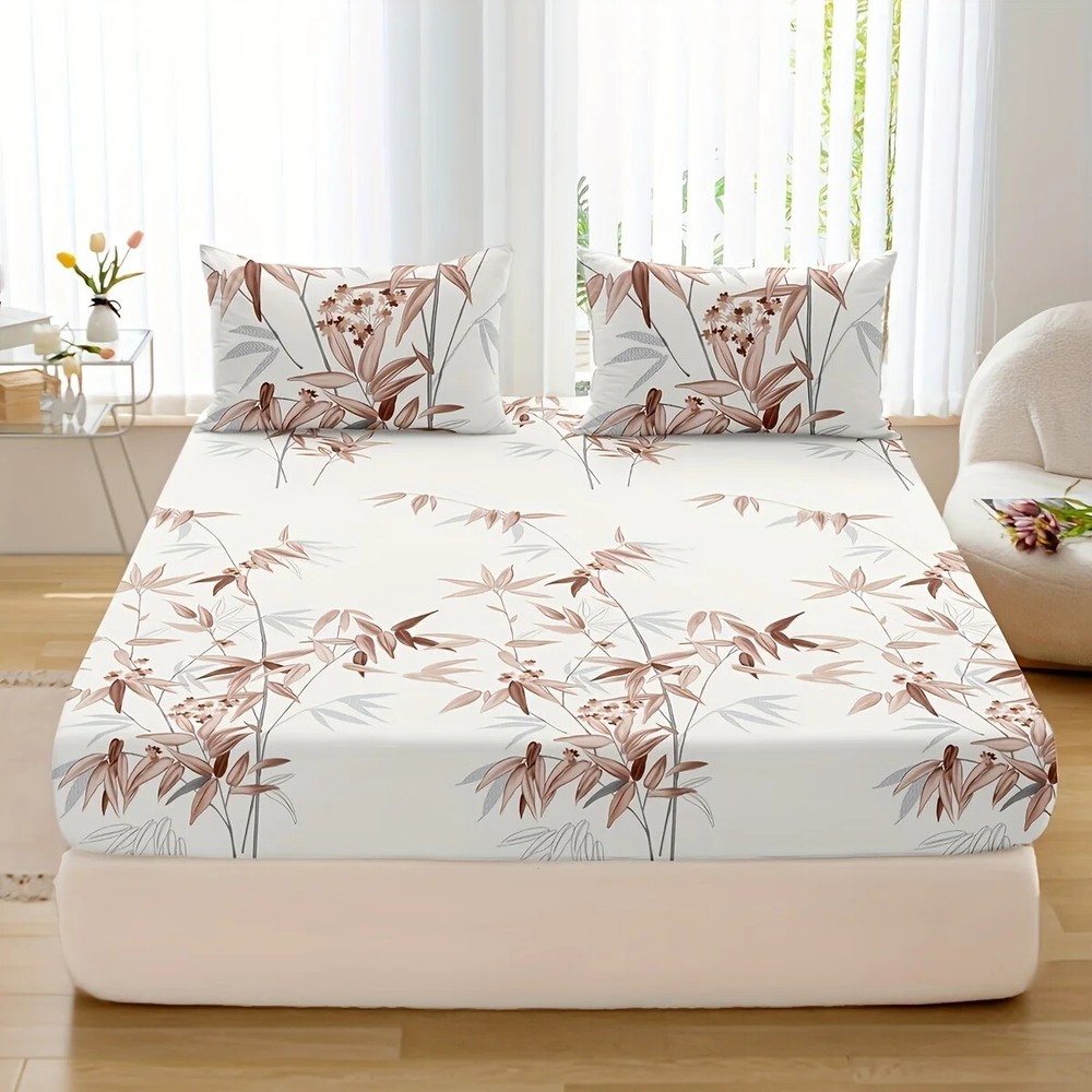 3pcs Bamboo Leaf Print Fitted Sheet Set - Soft, Breathable, Comfortable, Hypoallergenic Bedding for Bedroom, Guest Room - 1 Fitted Sheet, 2 Pillowcases, No Core Included, Easy Care, Wrinkle-Resistant, and Fade-Proof
