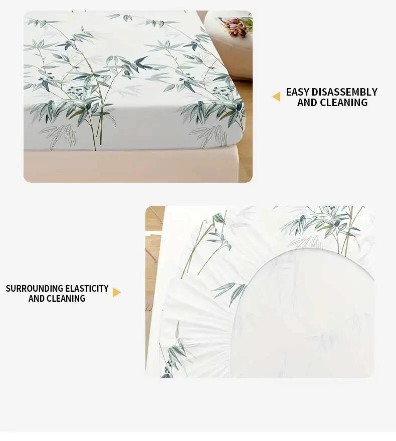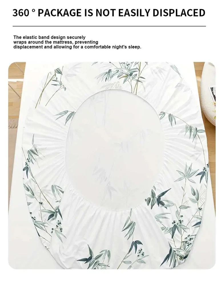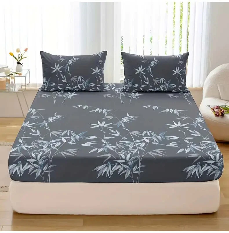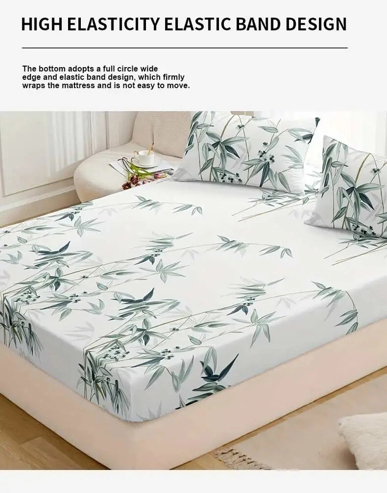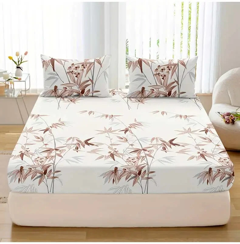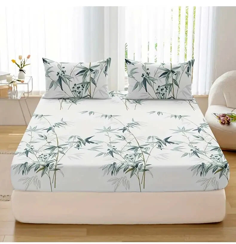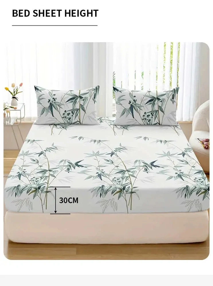 3pcs Bamboo Leaf Print Fitted Sheet Set - Soft, Breathable, Comfortable, Hypoallergenic Bedding for Bedroom, Guest Room - 1 Fitted Sheet, 2 Pillowcases, No Core Included, Easy Care, Wrinkle-Resistant, and Fade-Proof