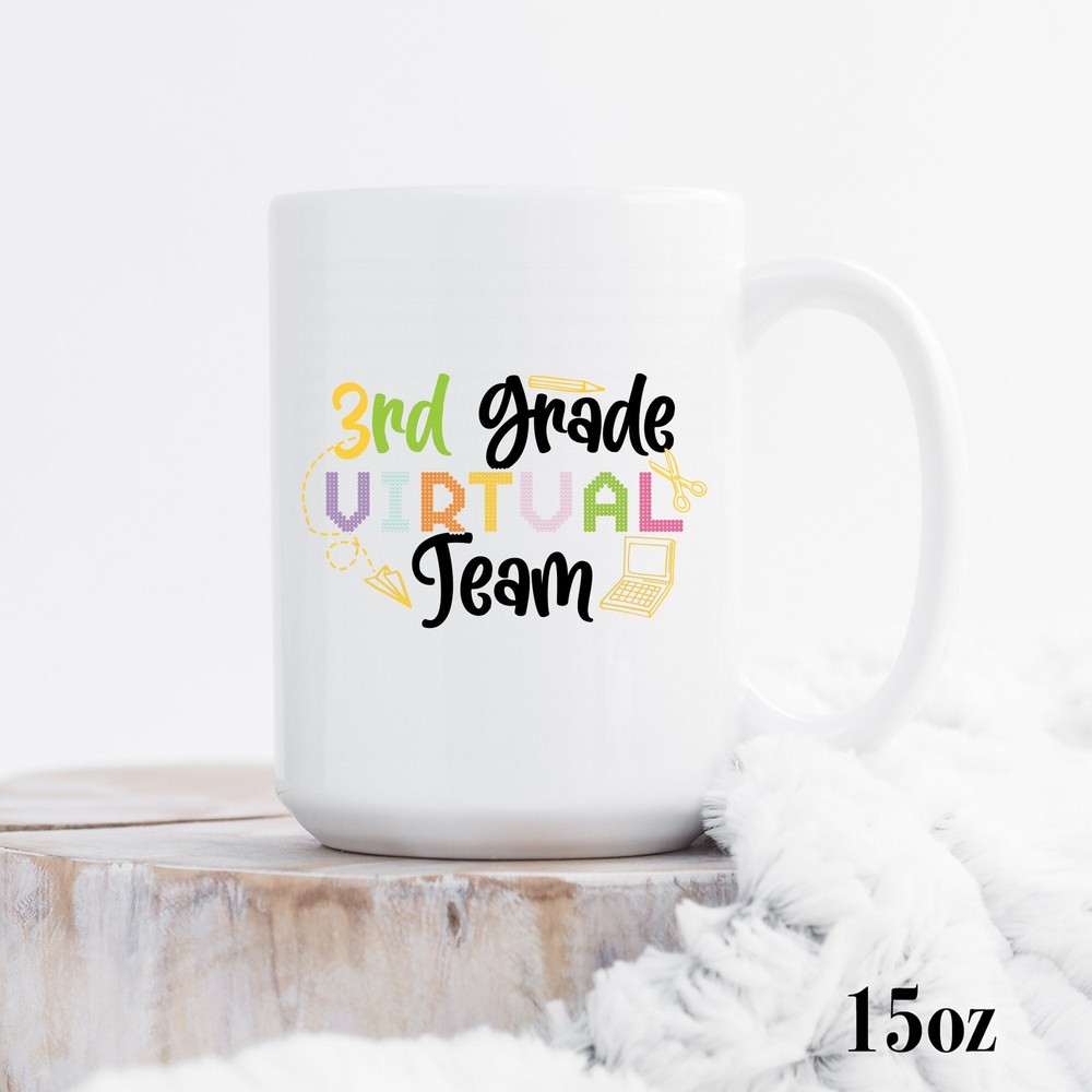 3rd Grade Virtual Team Mug Third Grade Online Class Online Teaching Mug Virtual Product Details.. This high quality 11oz. ceramic white mug has a premium hard coat that provides crisp and vibrant color reproduction sure to last for years. Perfect for all hot & cold beverages. The highest quality printing possible is used. It will never fade no matter how many times you wash it. Material: 100% Ceramic. Print both sides. Dishwasher and Microwave Safe. High Gloss + Premium White Finish. Printed in the U.S.A. Personalized & Custom. We support personalized and custom mug to add custom, when placing an order, you can add notes to the "order note" in shipping address section. Also you can contact us directly via message. Shipping Info. Ready to ship in 1 to 2 business days, All products are made-to-order and proudly printed in the United States. Shipped by USPS and DHL, You will receive your order in 5-7 days. Replace & Refund. All products are defective during shipping broken, chipped will be replaced free of charge. You are not satisfied with the product, we will refund 100% money to you. If any other issues arise, please do not hesitate to message, we would be more than happy to assist you.