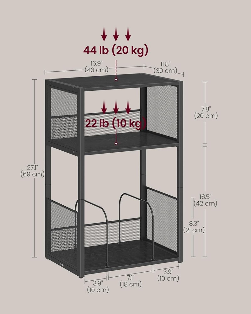 【3-TIER DESIGN】This bedside table features a tabletop for your record player and 2 open shelves that can hold up to 100 albums. Enjoy a tidy and organized music area 【EASY ASSEMBLY】This record player stand comes with detailed instructions and labeled parts, making it a breeze to assemble in just 6 simple steps 【VERSATILE USE】This turntable stand doubles as a side table, making it a versatile addition to your living room, bedroom, or study. Enjoy your afternoon tea or store daily essentials with ease 【STURDY AND STYLISH】Crafted from robust particleboard and steel, this couch table is built to last. The ebony black color creates an industrial look, adding a touch of vintage charm to your decor 【THOUGHTFUL DETAILS】The dense mesh prevents items from falling off, while the removable U-shaped dividers at the bottom allow you to customize your storage space to fit your needs