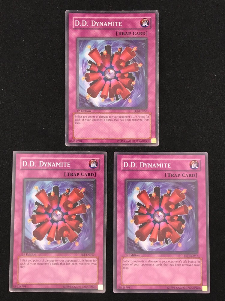 Listing is for a playset of 3x D.D. Dynamite YuGiOh cards. Th e condition and edition of the playset is specified in the drop down list. The pictures associated with the selection in the drop down list are of the actual cards you will receive. Condition of the card is as pictured. Card will ship in a plain white envelope via Ebay Standard Envelope service. Additional cards ship free when purchased at the same time using the cart feature. The cards must be purchased at the same time and not individually for the shipping discount to be automatically applied. Shipping by Bubble Mailer using USPS Ground Advantage is also available under shipping options for an additional charge. International Buyers - I use the eBay International Shipping Program for international shipments. The international portion of the shipment is handled by eBay and the shipping price is set by eBay. I have no control over the shipping price they set.