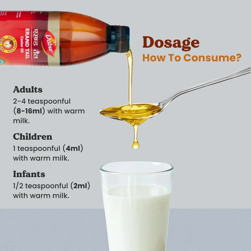 3x Dabur Erand Tail Pure Cold Pressed Castor Oil 100% Herbal 100ml Each (FREE SHIP) Dabur Erand/Castor Tail is a cold-pressed castor oil that is 100% pure and natural. It is formulated to provide effective relief from constipation. The main ingredient in Dabur Erand/Castor Tail is pure castor oil (Erand Tail), derived from the seeds of the Ricinus communis plant. Key Ingredients: Erand Tail (Castor Oil) Indications: Dabur Erand/Castor Tail is primarily indicated for the relief of constipation. Key Benefits: Dabur Erand/Castor Tail is known for its mild purgative properties and is indicated for the relief of constipation in children, weak adults, and elderly individuals The oil is believed to improve intestinal functioning and promote regular bowel movements Dabur Erand/Castor Tail is said to nourish the hair and promote hair growth when applied topically. It is also claimed to make the skin smooth, remove acne, and reduce wrinkles Castor oil, the main ingredient in Dabur Erand/Castor Tail, contains ricinoleic acid, which is believed to inhibit viruses and bacteria. It is considered a natural remedy for acne Dosage: For adults: Consume 2 to 4 teaspoonfuls (8 ml to 16 ml) with warm milk For children: Consume one teaspoonful (4 ml) with warm milk or honey For infants: ½ teaspoonful (2ml) with warm milk