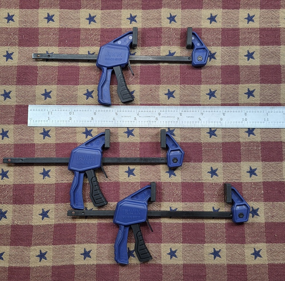 Up for sale is a lot of 3 Irwin Quick-Grip Mini 5-Inch Clamps. These clamps are pre-owned but fully functional and ready to use. They show normal signs of light use (see photos for condition details). Ruler not included. Perfect for: Woodworking DIY projects Crafts Small repairs Hobby work The Irwin Quick-Grip design allows for one-handed operation, making clamping quick and easy. Details: Brand: Irwin Type: Quick-Grip Mini Clamp Size: 5 inch Quantity: 3 clamps Condition: Pre-owned / Used π Fast Shipping! Item will be carefully packed and shipped promptly after purchase. Feel free to message with any questions. Thanks for looking!