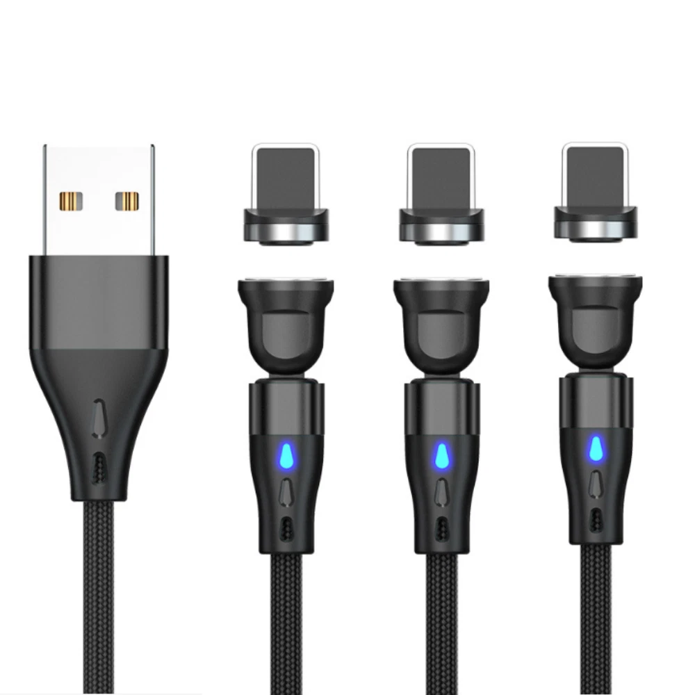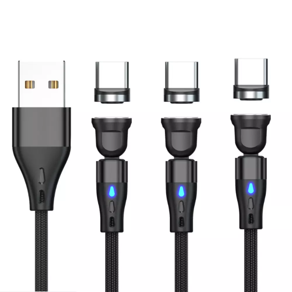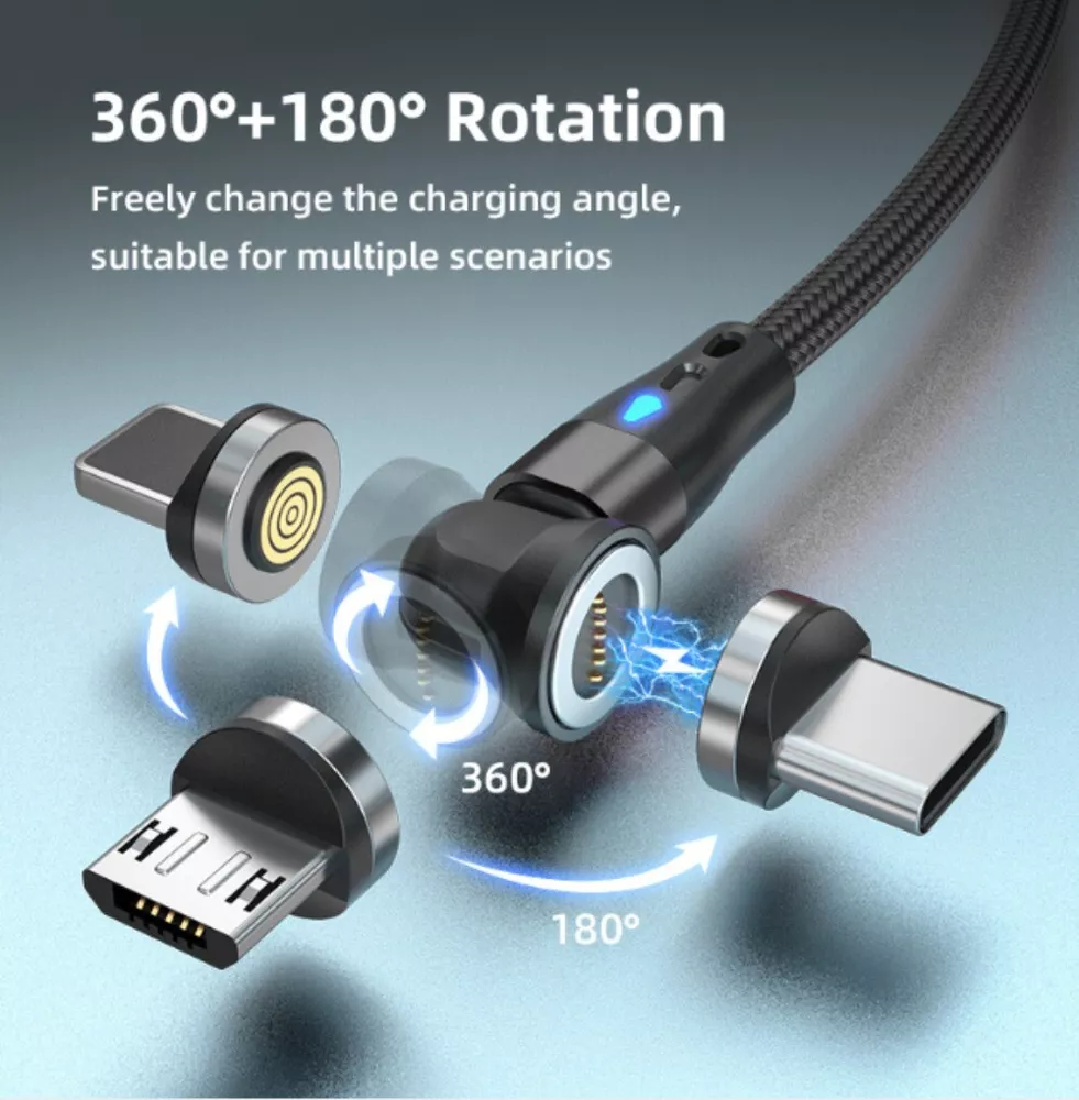 3x Lot Rotate Magnetic Phone Charger Charging Cable For Micro USB/Type C/ iPhone
