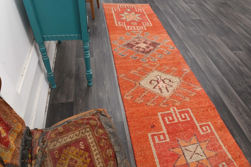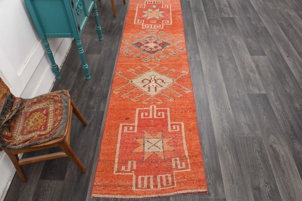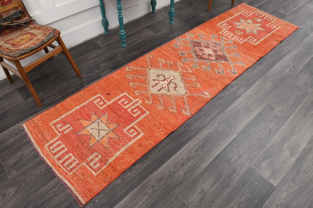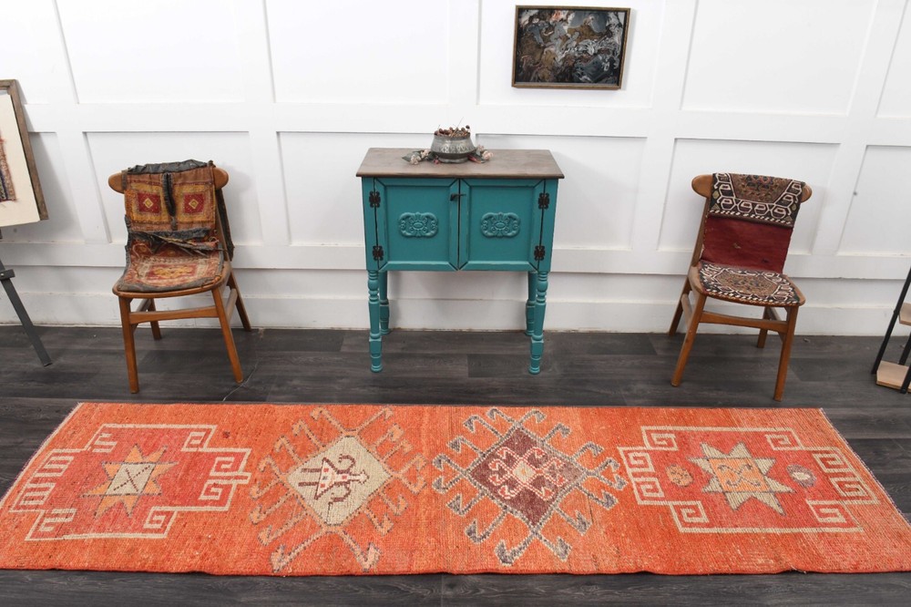 โ This special rug is a ๐จ๐ง๐-๐จ๐-๐-๐ค๐ข๐ง๐ Turkish runner rug. This vintage Turkish ๐ซ๐ฎ๐ is perfectly ๐ฑ๐ช๐ท๐ญ๐๐ธ๐ฟ๐ฎ๐ท by the artisan. This handmade special ๐ฏ๐ข๐ง๐ญ๐๐ ๐ ๐ซ๐ฎ๐ is eye-catching and has ๐๐๐ซ๐๐๐ฎ๐ฅ๐ฅ๐ฒ ๐๐๐ญ๐๐ข๐ฅ๐๐ motifs. โค Stock No: 60814 โค Size: 2.7x10.1 feet โ 83X307=255 cm2 โค Materials: % 50 Cotton + % 50 Wool โค All items in our art gallery are handwoven. This ๐ฉ๐ซ๐๐ฆ๐ข๐ฎ๐ฆ vintage rug can be used both at the business lounges, offices, residences or outdoors. It also can be used as a hall rug, hallway rug, kitchen rug, bedroom rug, anteroom rug, living room rug, entrance rug, dining room rug, saloon rug, and area rug. ~ ๐ฆ๐ฎ๐ต๐ฌ๐ธ๐ถ๐ฎ ๐ฝ๐ธ ๐๐พ๐ป ๐๐ป๐ฝ ๐๐ช๐ต๐ต๐ฎ๐ป๐ ~ Perfect decoration, Premium, High-quality, Carefully detailed, Exclusive and Unique. ๐ท Photos were taken indoor and daylight. Please check all the photos of the items for details of the rugs. โ๏ธ This item is ๐๐๐ซ๐๐๐ฎ๐ฅ๐ฅ๐ฒ ๐๐ก๐๐๐ค๐๐, professionally cleaned and ready to use. Satisfaction guaranteed! โ๏ธ Items will be ๐ฌ๐ก๐ข๐ฉ๐ฉ๐๐ ๐ฐ๐ข๐ญ๐ก๐ข๐ง ๐-๐ ๐๐๐ฒ๐ฌ. Rugs will be delivered in 5-6 business days. ๐ Shipped by FedEx Express or TNT Express. All credit cards accepted (Visa, Mastercard, American Express and Debit Cards) โบ %๐๐๐ ๐๐๐๐ฎ๐ง๐ ๐ ๐ฎ๐๐ซ๐๐ง๐ญ๐๐ in case of any dissatisfaction. In this case, the buyer will pay the return shipping costs. ๐ Gift wrapping and messages are available. โ๏ธ We also do special designs, ๐๐ฎ๐ฌ๐ญ๐จ๐ฆ ๐ซ๐ฎ๐ ๐ฌ, and patchworks. Please feel free to inquire about making your perfect custom dream rug! โ Please feel free to ask for any information and details. It will be answered as soon as possible.