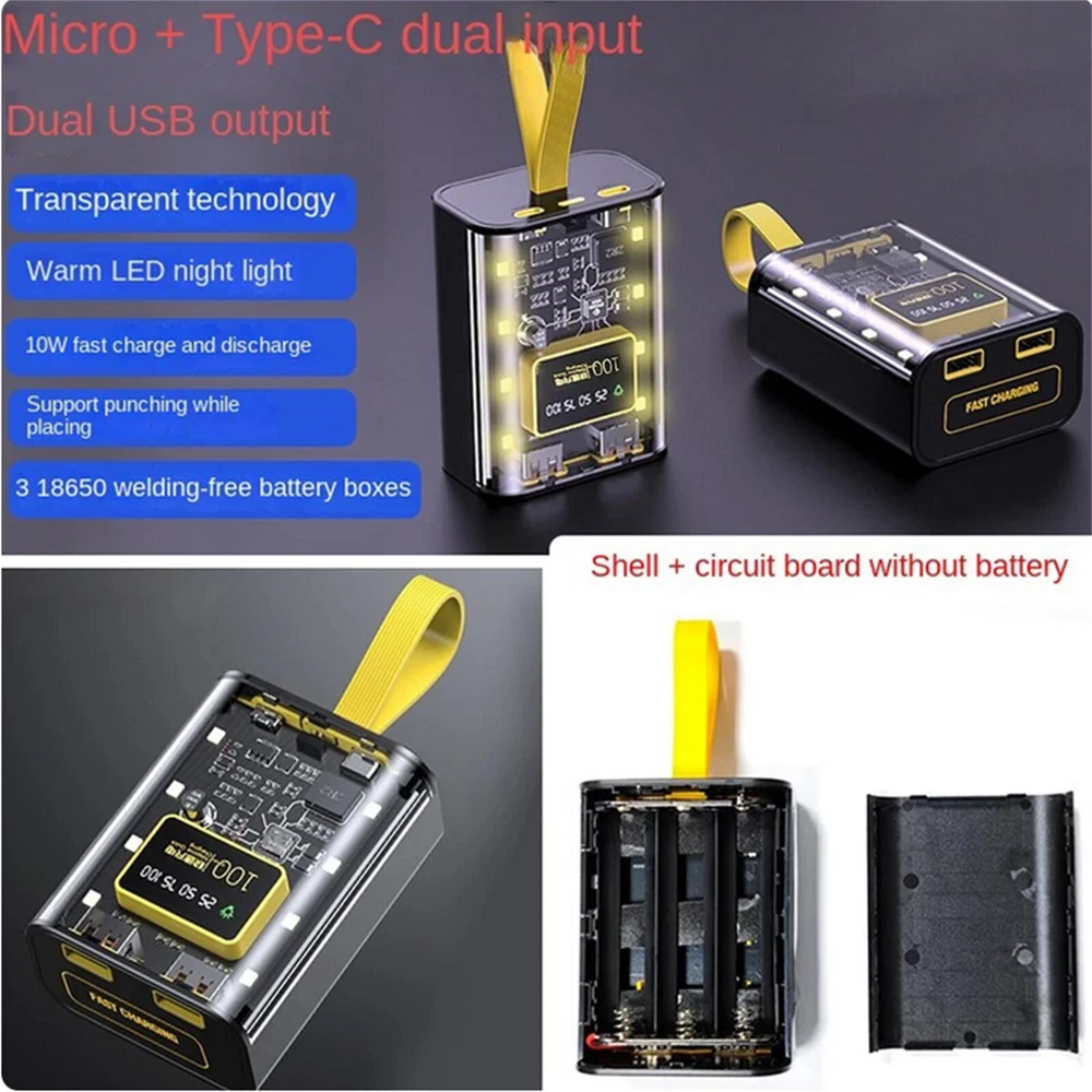 SAFE & SECURE SHOPPING 100% SATISFACTION GUARANTEED FAST SHIPPING Store Categories Store Categories You may also like 3x18650 DIY Power Bank Case Portable Digital 18650 Battery Charger Storage Box Product Description 3*18650 Battery Charger Case Cool DIY Free Welding Power Bank Box Fast Charging Case With Night Light Charging Power Bank Case Features: 1. Dual USB output, Micro+Type-C dual input, transparent shell full of technology, warm LED night light. 2. 10W fast charging and discharging, supporting both charging and discharging, 3 18650 batteries, solder free battery box. 3. High power output/compact and portable/intelligent digital display/two simultaneous charging/multi device compatibility. 4. Warm little night light, accompanying you at night, with adjustable brightness in 4 gears, full of warmth. 5. Large screen digital display, power visualization, and the ability to view the remaining power status anytime and anywhere. 6. Hanging rope design makes it more convenient to go out, easy to carry, very convenient. 7. Safe core layer by layer protection, high-quality components, low temperature fast charging without burning. Specifications: Input: 5V2A Output: 5V2A Battery Model: 18650 Flat Head Battery(Not included) The package includes: 1 * DIY Free Welding Power Bank Box Note: This product is a solderless mobile power supply kit (circuit board+shell) and is not a finished product of a mobile power supply. It does not include batteries, data cables, or box packaging. The battery needs to be purchased separately with a 18650 (flat head) battery before use. Please note that the battery capacity must be consistent. Do not place the battery upside down as it will damage the motherboard. (The spring is the positive pole, and the spring is the negative pole) Please place it correctly. There is no chance of secondary disassembly, and the shell cannot be disassembled again. Please fix it all at once! Shipping Returns Contact Us Payment Shipping We ship most of our orders within 24 hours, and may up to 48 hours. If you want faster shipping way, please contact us before making a payment. Sometimes due to problems with our transportation company system, your shipping information may be delayed to update. We recommend that you try again after 3-4 days. If you still haven't checked the shipping information, you can contact us via ebay message. Returns 1. 30 days warranty from the purchased date. Please contact us via email before returning the defective item. 2.Our warranty does not extended to any product that are physically damaged or that are not under normal operating conditions as result of misuse or improper installation on the buyer/user's part. 3.Return items should include the original packaging and all accessories. buyers MUST contact us for the returning address. 4.In all cases, buyers pay shipping fees at their own cost to return products for exchange or refund. We will be responsible for the postage of replacements. Refund will be made upon receipt of the returned item. Contact Us Pls contact us if you have any problems,we will try our best to solve for you Payment We accept all verified payment from eBay. Copyright © 2022 Tongtool