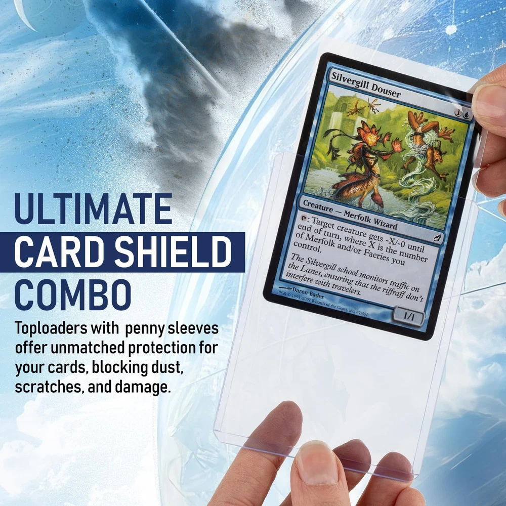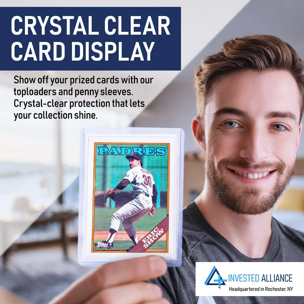 Protect and Preserve Your Prized Trading Cards with card toploaders and sleeves. Elevate your card collecting experience with our comprehensive protection set. This ultimate collector's package includes 1000 durable toploaders and 1000 penny sleeves, perfectly sized for standard 2.5" x 3.5" trading, gaming, and sports cards top loaders. Engineered to shield your valuable collectibles, these 3" x 4" thick toploaders accommodate cards up to 20PT thickness, providing robust defense against bending, dust, and moisture. Whether you're a serious collector or a strategic investor, these card protectors are designed to maintain your cards' pristine condition and long-term value. These trading card top loaders and sleeves are easy to use and ideal for personal collections or trade show displays, this set offers the ultimate solution for preserving and showcasing your most cherished cards. Complete Set for Collectors: Package includes 1000 durable toploaders and 1000 penny sleeves designed for standard 2.5” x 3.5” trading, gaming, baseball and sports cards top loaders. Ultimate Protection: Trading card sleeves and sports card toploaders provide sturdy protection against bending, dust, and moisture, helping to preserve the condition of your trading cards. Perfect Fit for Standard Cards: Each thick toploaders measures 3” x 4” and accommodates cards up to 20PT thickness. These card sleeves and top loaders are perfect for any collector. Preserve Card Value: These card top loaders and sleeves help maintain the condition and value of your cards over time, making them perfect for collectors and investors. Display and Store with Ease: Trading card top loaders offers an easy way to display cards in your personal collection or at trade shows, keeping them safe and protected. Value Pack: This bulk top loader and sleeve pack allows you to continue growing our collection without a hassle!