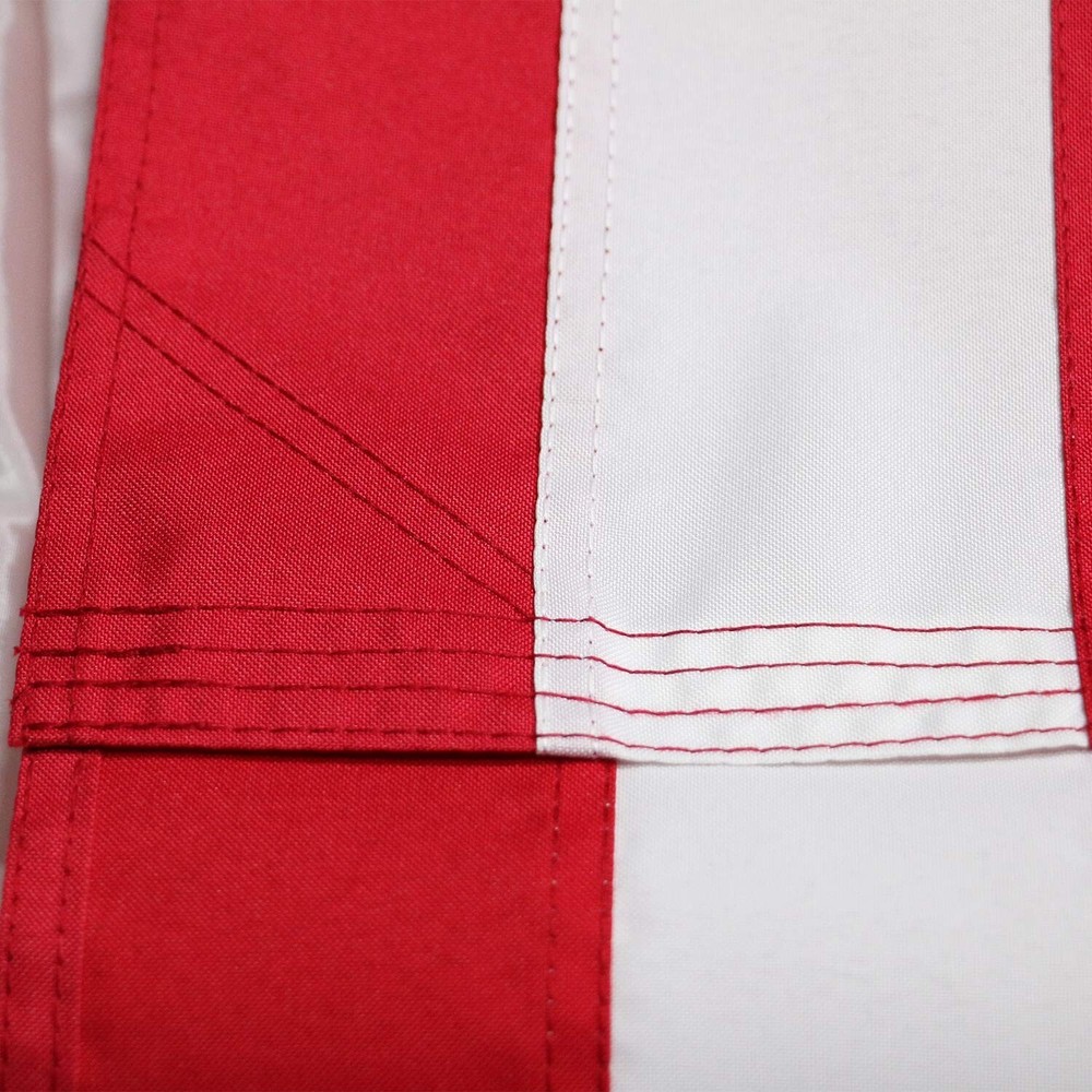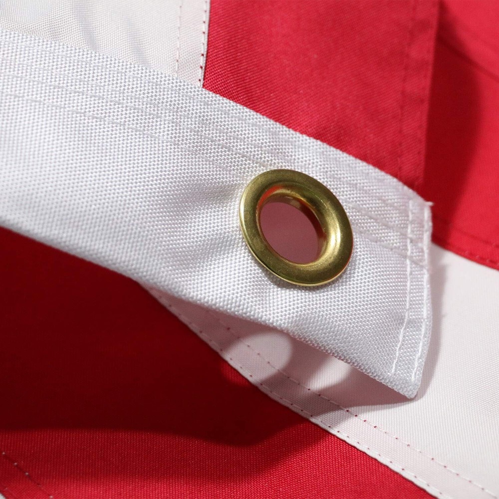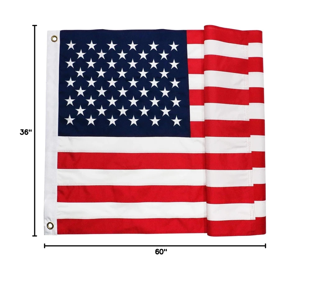 3x5 FT American Made USA Flag Long-lasting Heavy Duty United States Flag Embroidered Stars Sewn Stripes UV Protected Outdoor US Flag Product Details Size: 3 by 5 foot Brand: DLORY UPC: 655160601262 EAN: 0655160601262 MPN: Does not apply Theme: Patriotic Color: Red,White Brand: DLORY Recommended Uses For Product: Outdoor Occasion: Flag Day,Independence Day,Veterans Day Material: Polyester Special Feature: Heavy Duty Cartoon Character: American Flag,Stars Specific Uses For Product: Outdoor Product Dimensions: 60"L x 36"W Item Weight: 14 ounces Manufacturer: American Flags by DLORY Flag YOUR PATRIOTISM-This beautiful American Flag Size is 3x5 foot (36x60 inches) with 2 brass grommets.The Old Glory is strong constructed to hang proudly in all weather.Put your patriotism out there for all to see! WEATHER RESISTANT- Heavy Duty waterproof 300D 100% Woven Polyester specially treated to dry quickly and UV protection to resist fading.Well made high quality fabric makes flag easy to fly outdoor and withstand windy and rainy weather much longer. QUALITY CRAFTSMANSHIP-50 Embroidered stars and 13 sewn vibrant white&red stripes.Quadruple rows stitching on the flying end hem.Added reinforced patches on the two corners of flying end and Back Tack reinforcement for long lasting.You will be fully satisfied with the workmanship of this flag. STURDINESS-Tough waterproof heavyweight header with two big solid rolled rim brass grommets for more durability to stand up to harsh weather.Easy to install on any type flag pole with two or three hanging support.Great gift decoration indoor or outdoor for your Patriotic Family Home, Porch, Garden and Business. RISK FREE-365 Days Guarantee of flag.You will receive sturdy satisfying 3'x5' United States of America Flags without any logo printed on flag.Any issues,you can get our assistance within 24 hours through buyer/seller communication tool (you can find it in your order details).